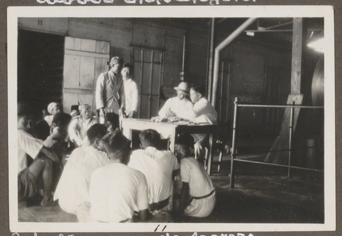 De rubbertappers worden uitbetaald