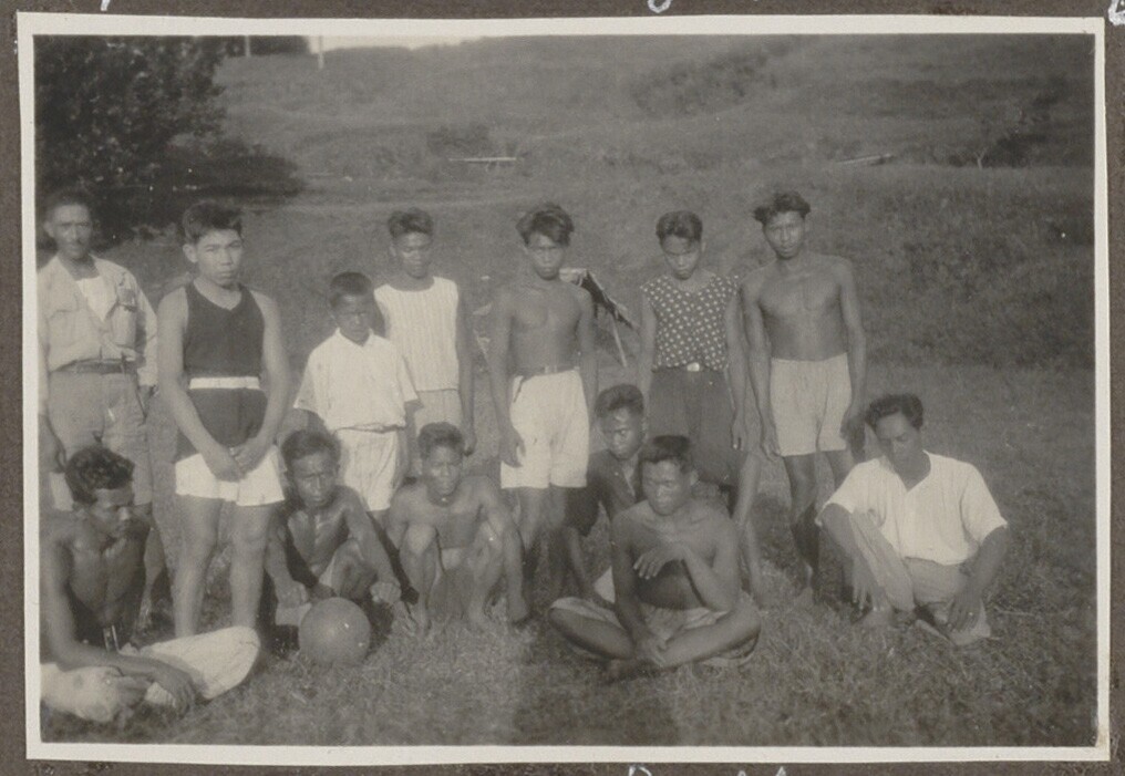 Groepsportret van jonge Javaanse mannen