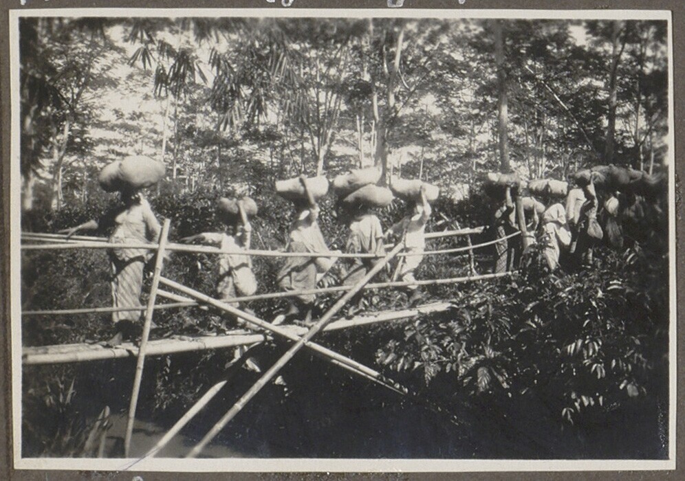 De werknemers van de plantage op weg naar huis