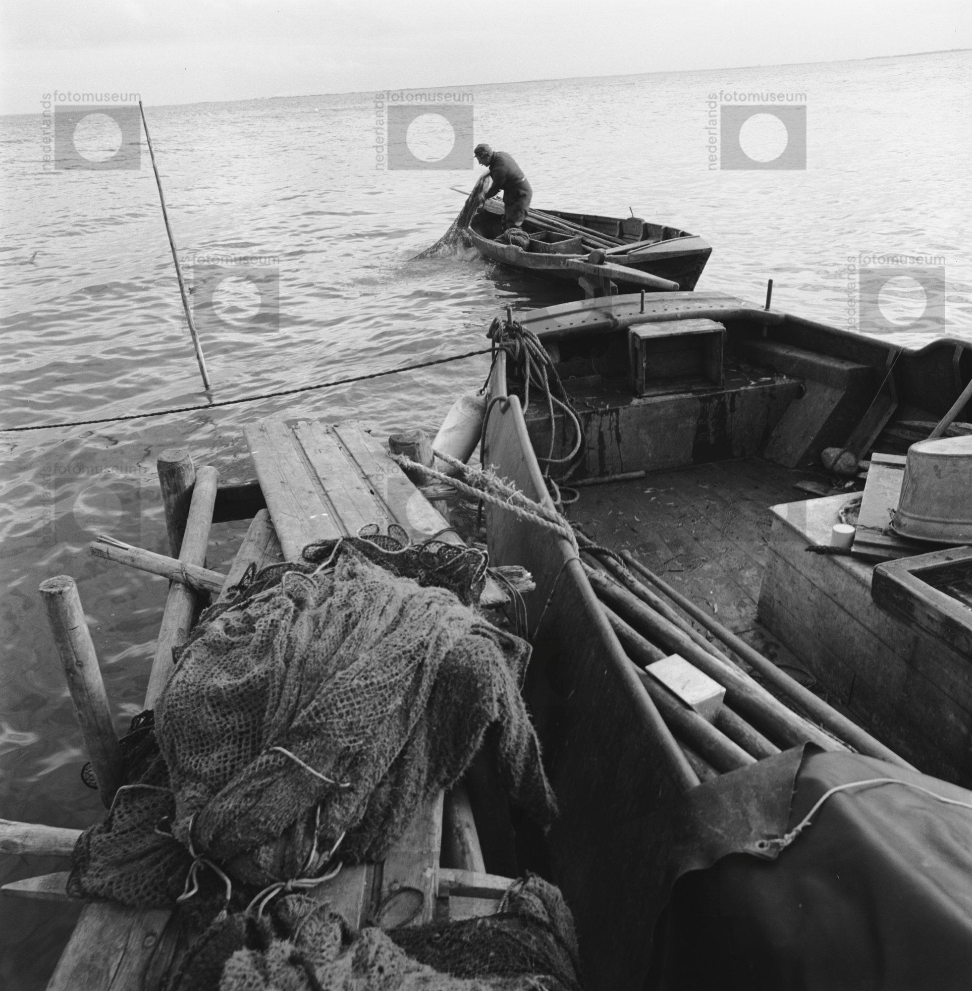 Amsterdam. Broodvisser hangt zijn fuiken te drogen o...