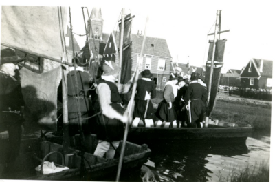 Een groep bewoners van Marken op de boot terug naar ...