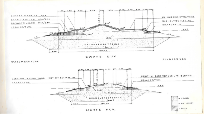 Dwarsdoorsnede van zware dijk en lichte dijk