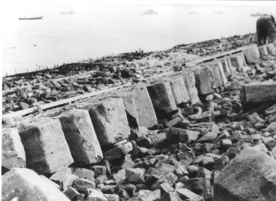 Stenen en basaltblokken voor het dijklichaam van de ...