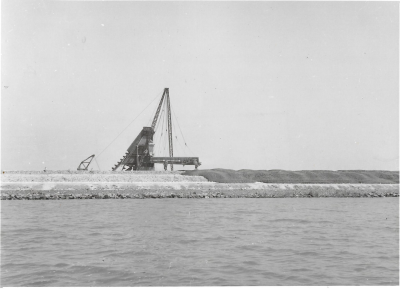 Luchtfoto van Perceel P en aanleg van strekdam, ca. ...
