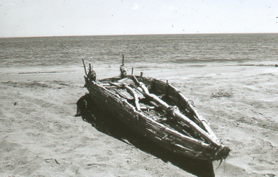 Wrak van Urker visserschip (‘skeut’) UK 43 in de hav...