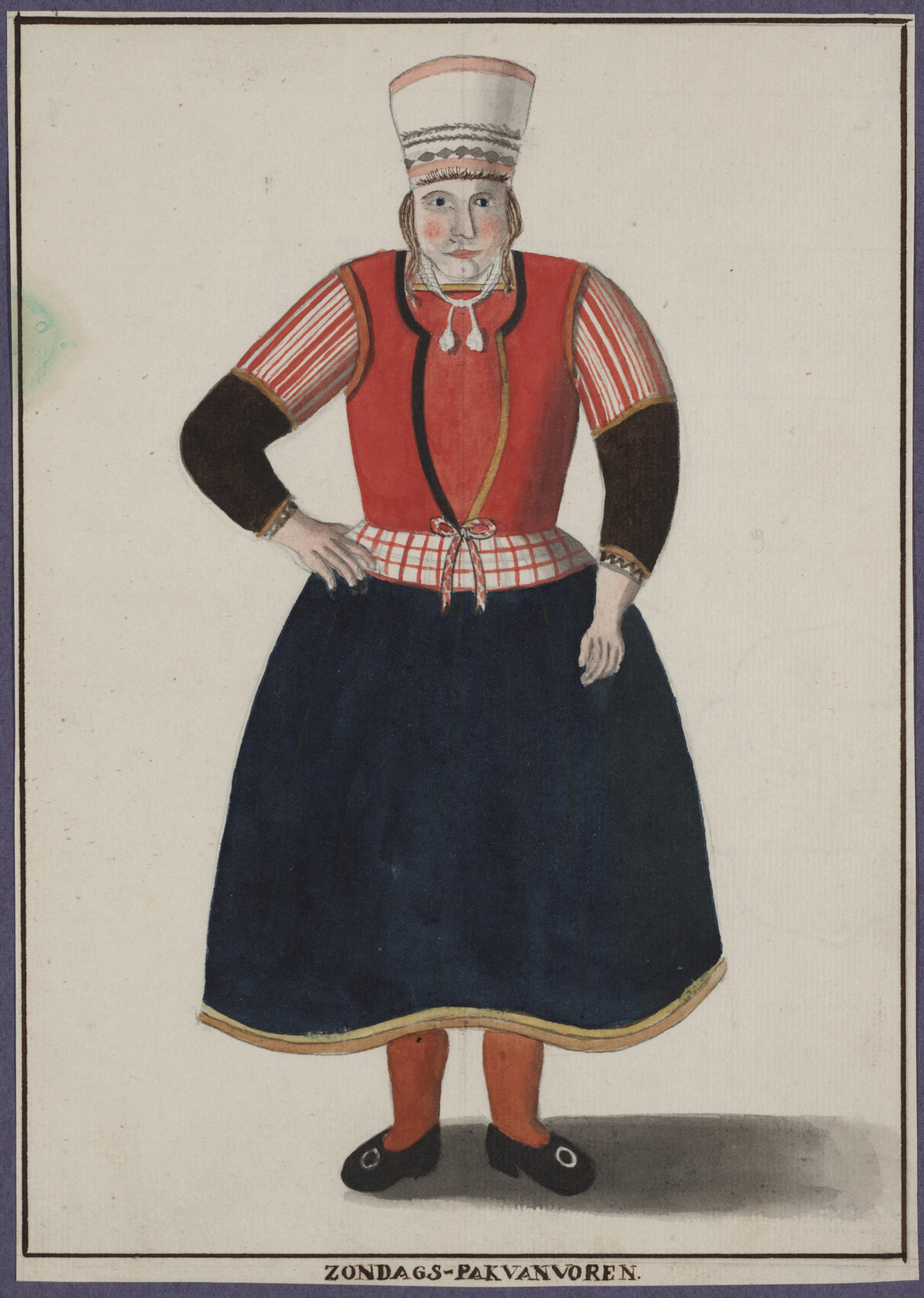 Vrouw in zondagse dracht, Marken, 1800–1900