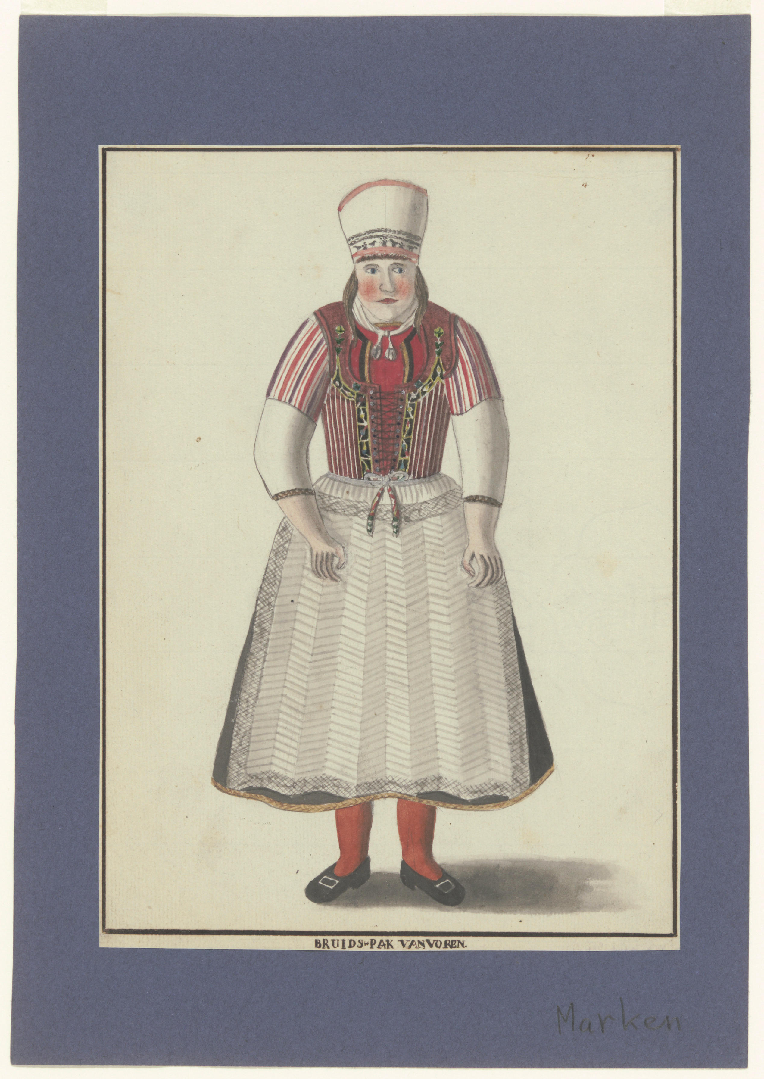 Bruid in rijglijf met de zeven rozen, Marken, 1800–1900