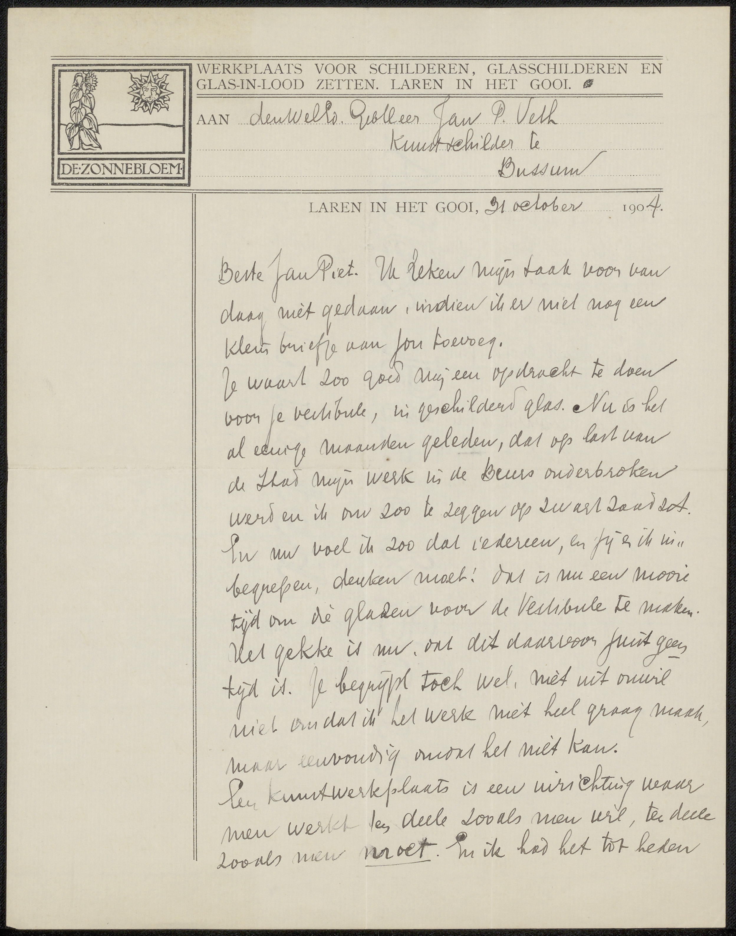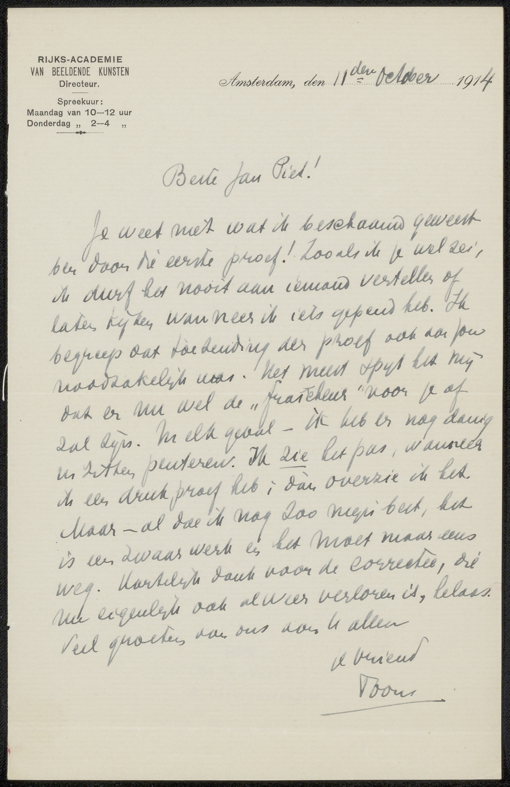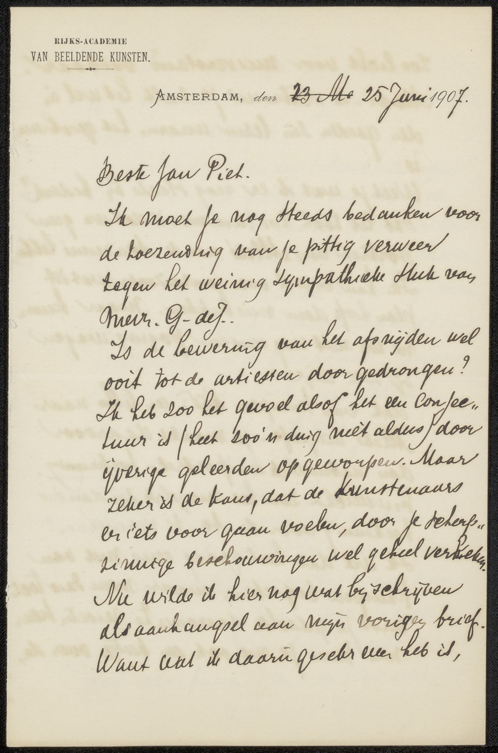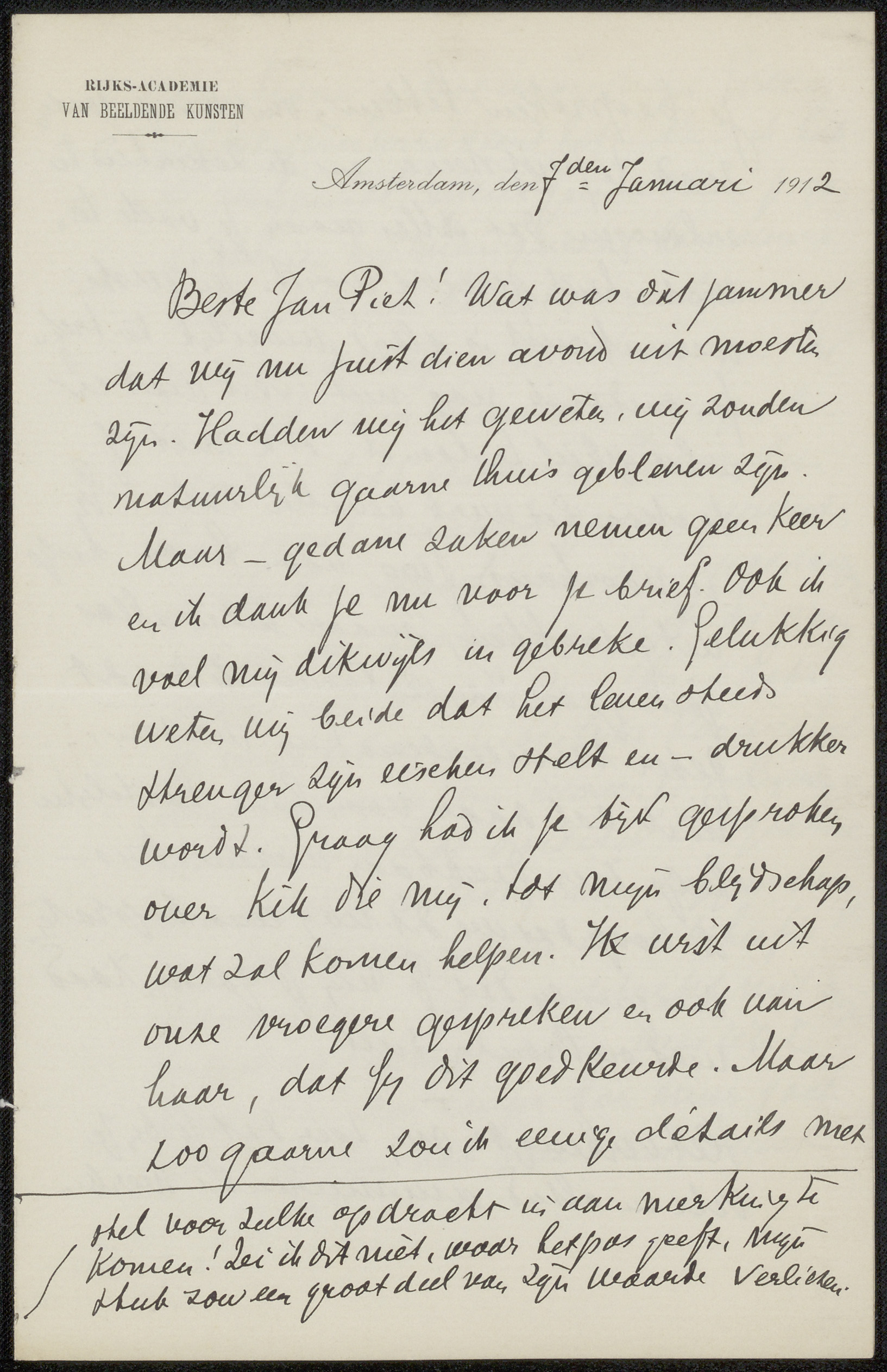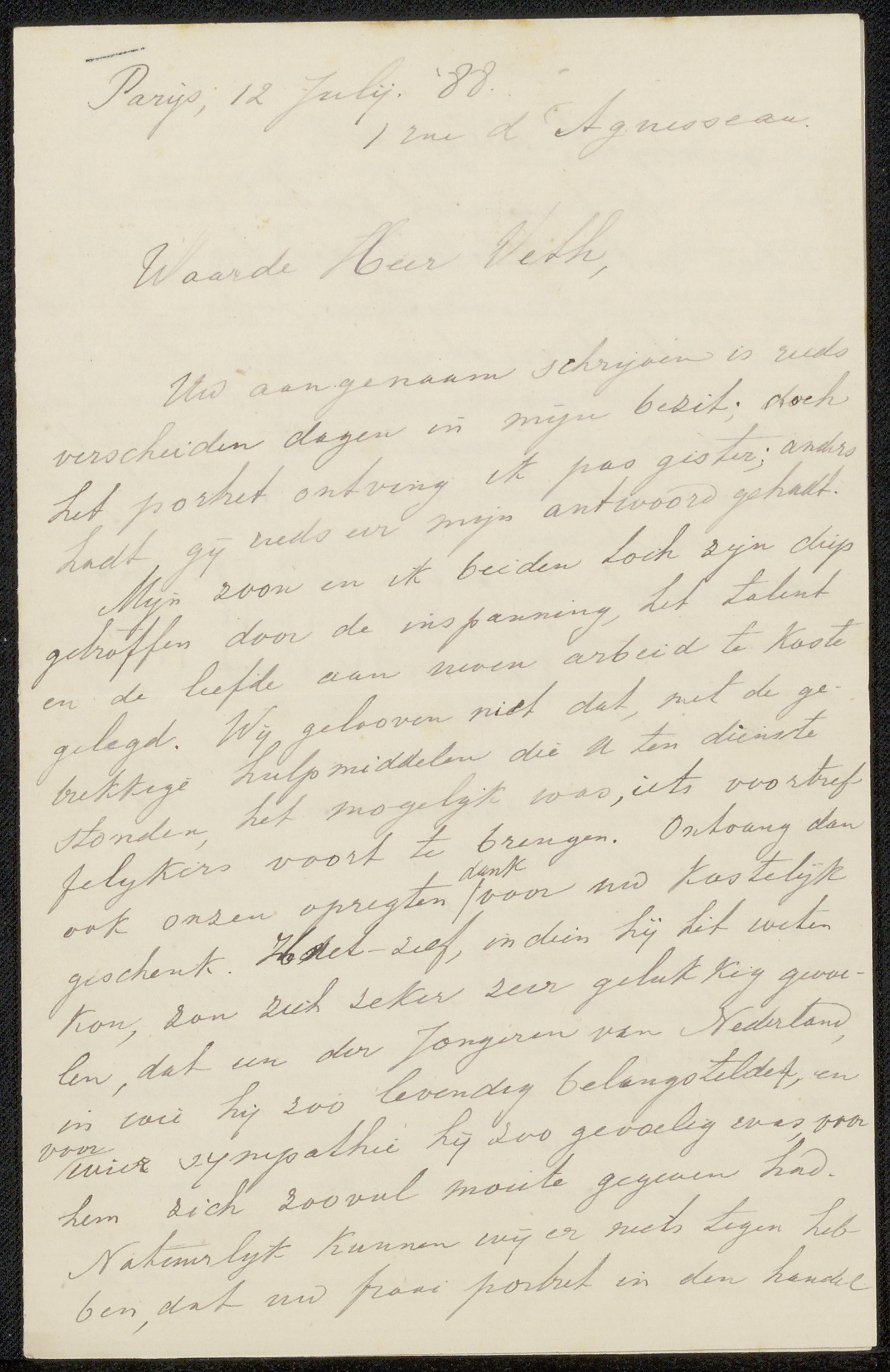 Brief aan Jan Veth