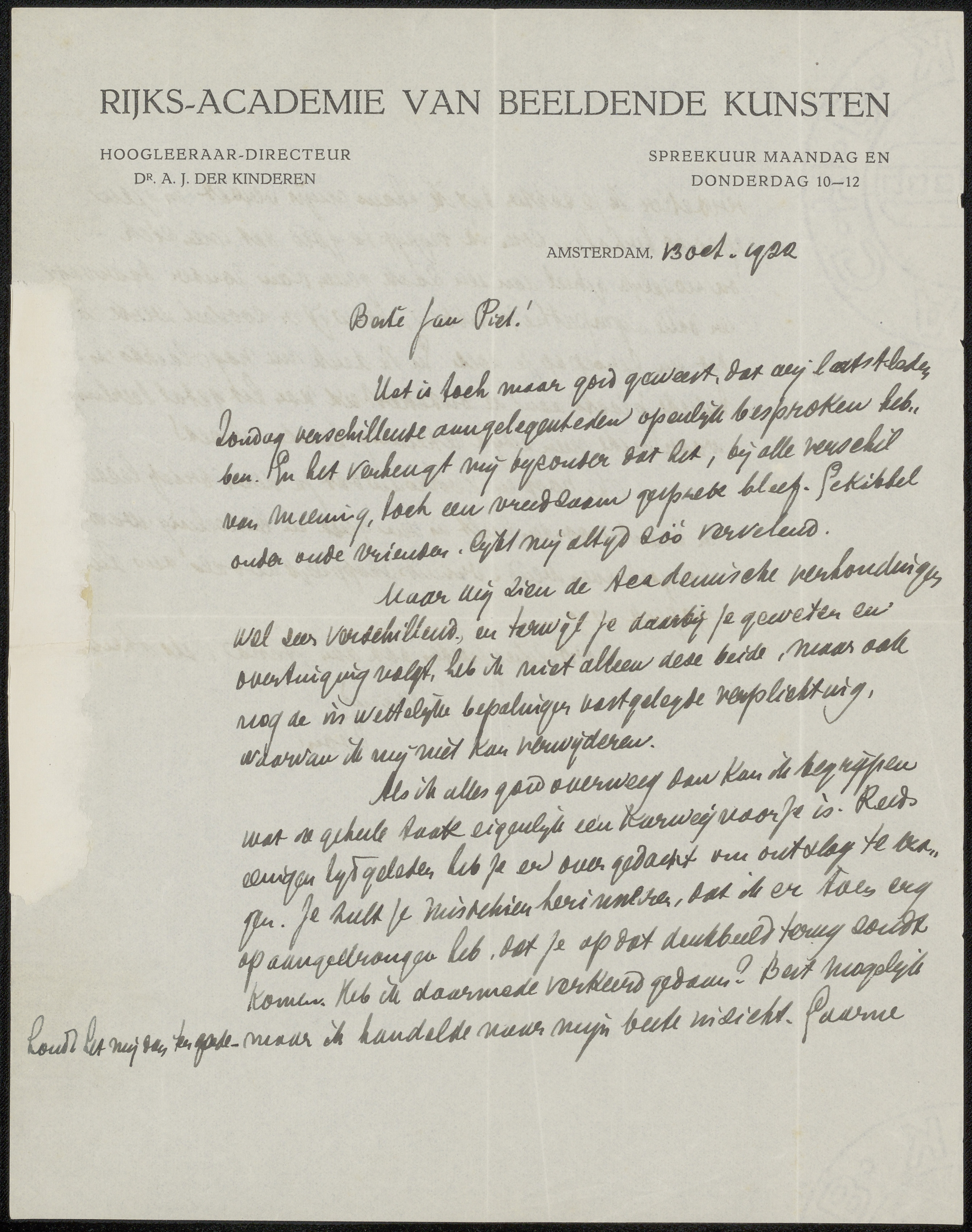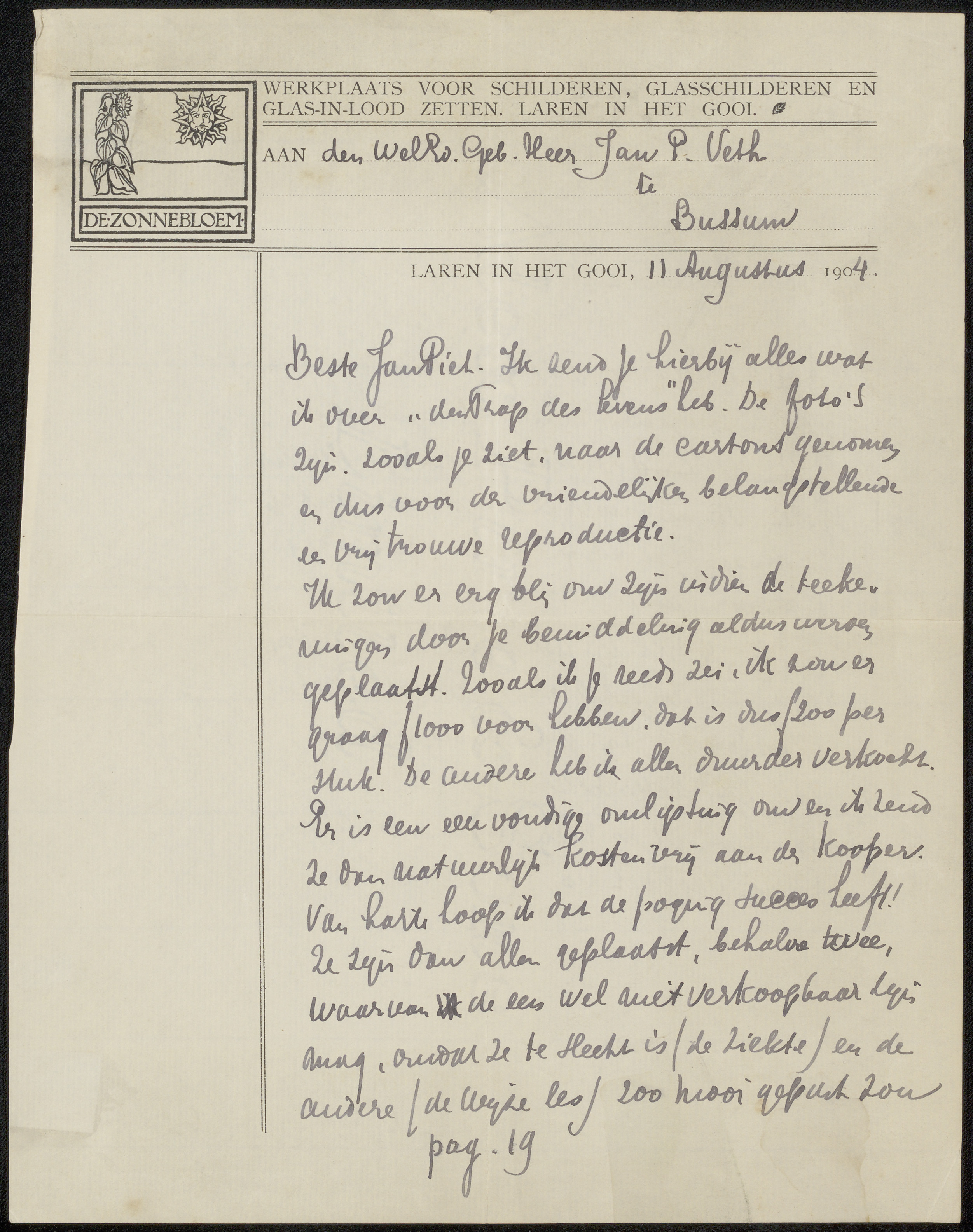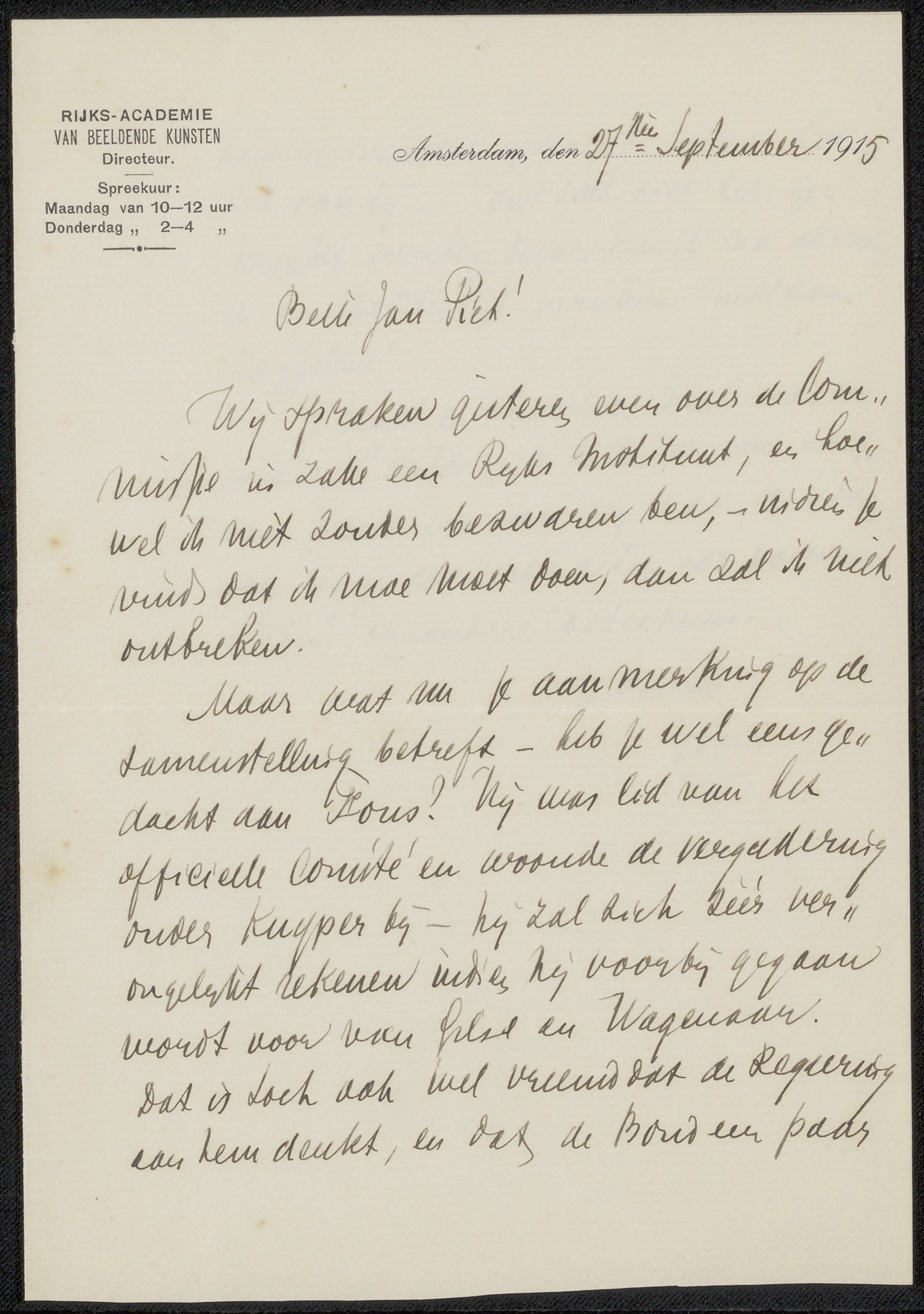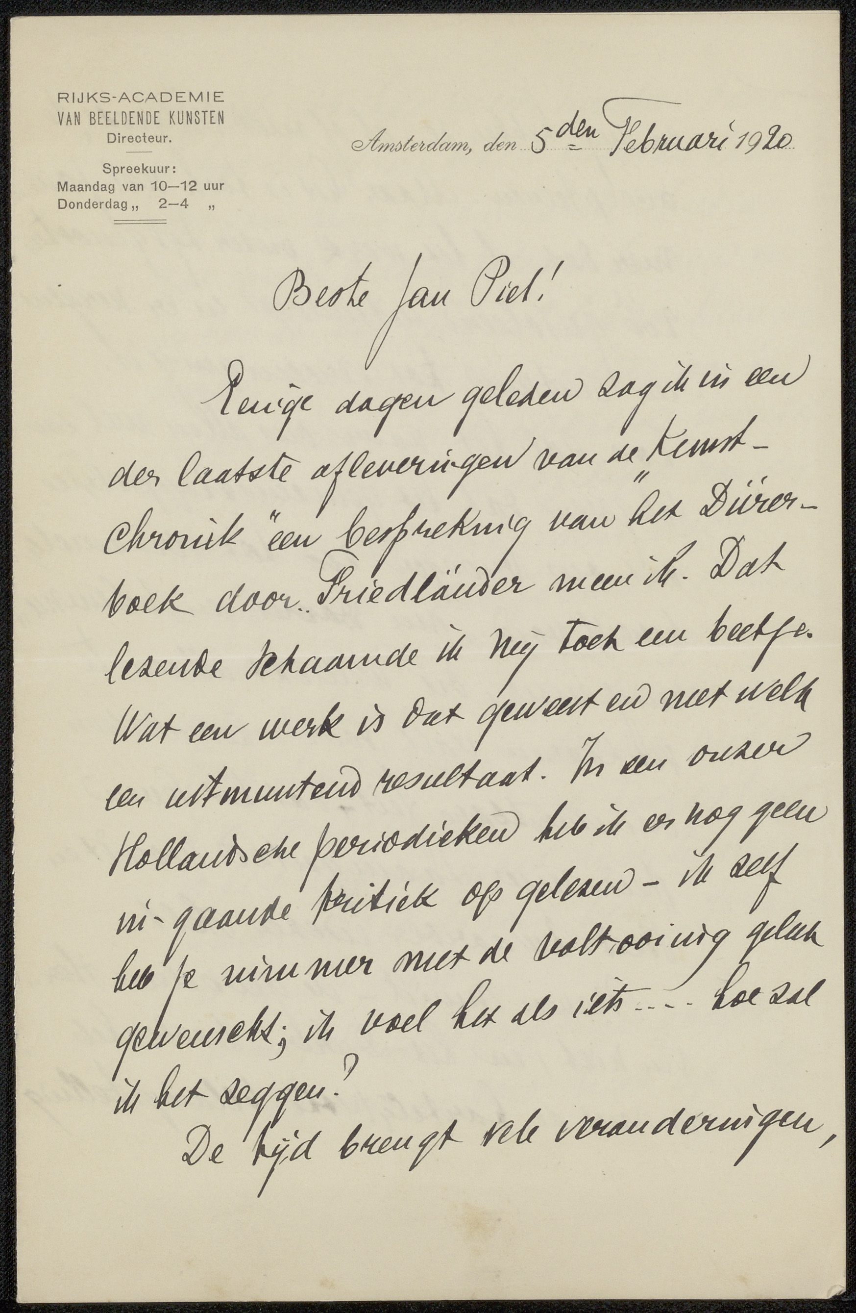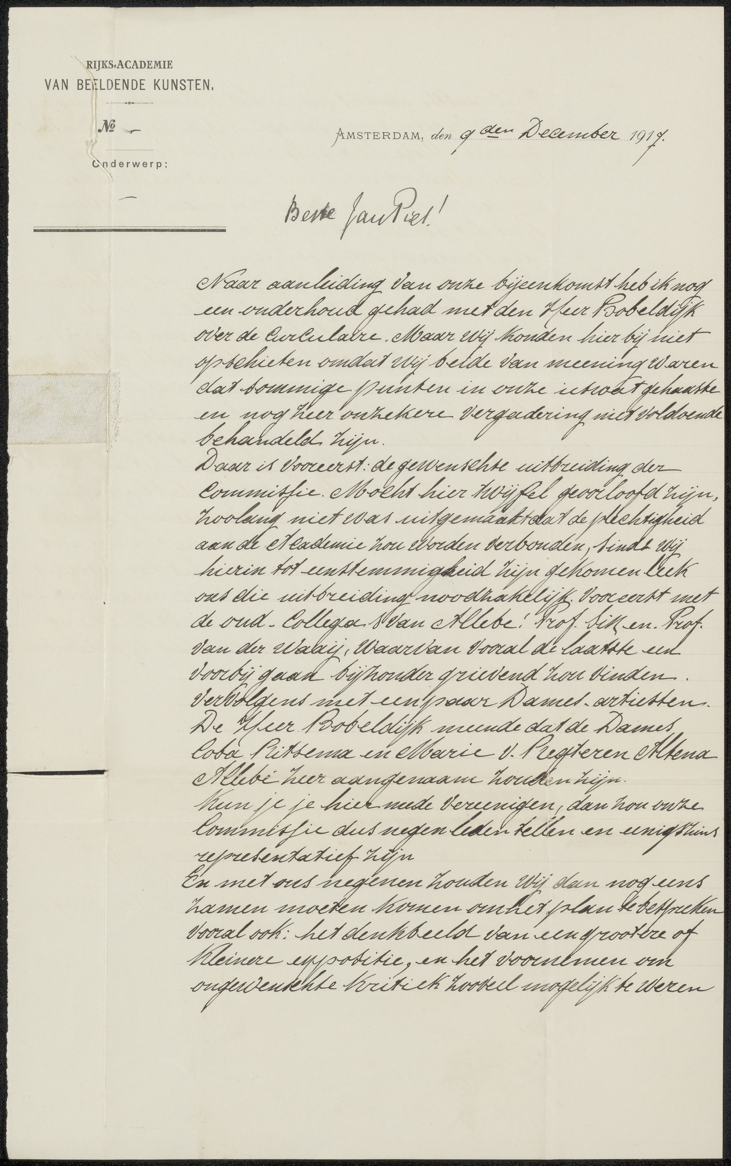 Brief aan Jan Veth