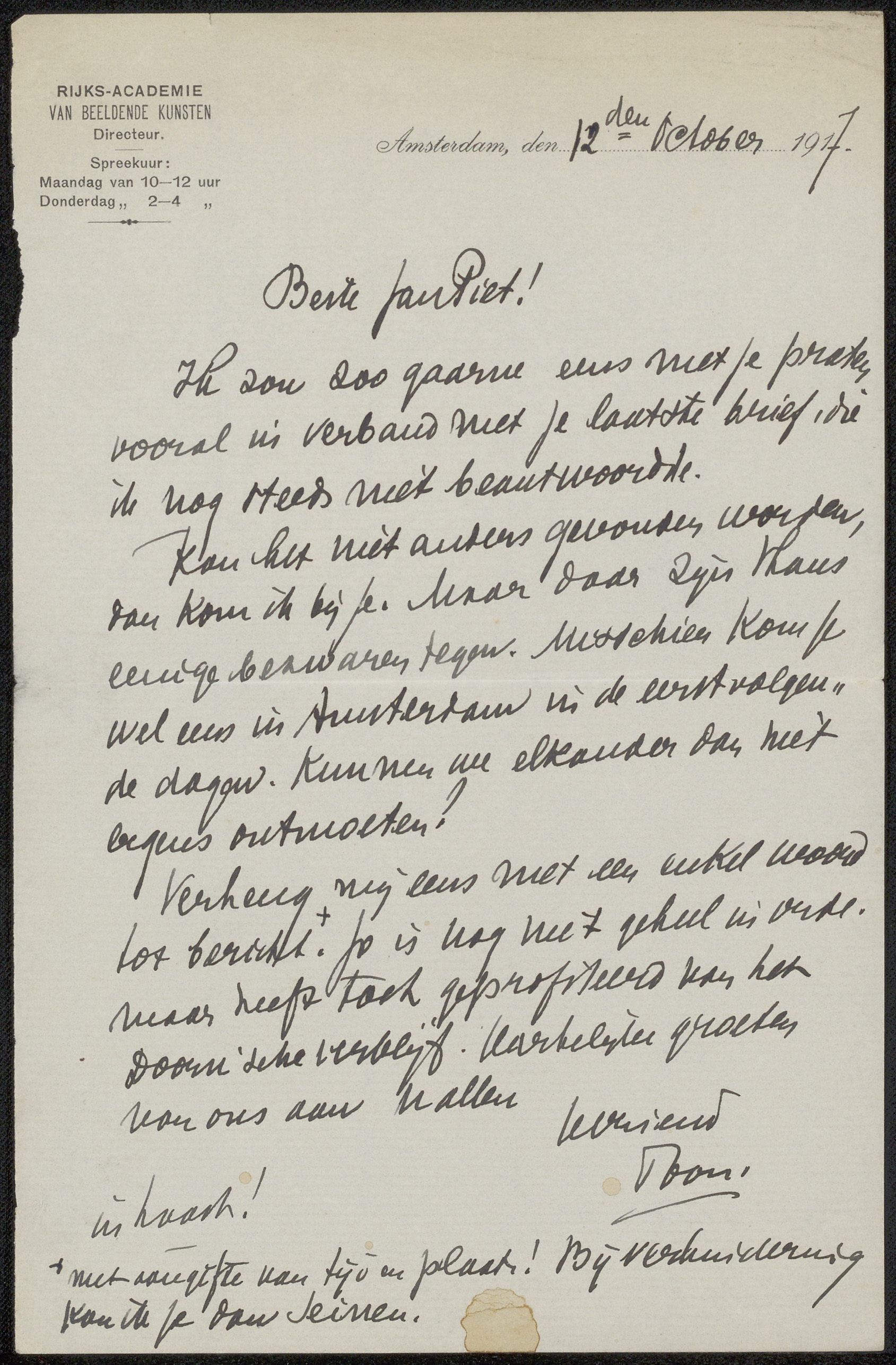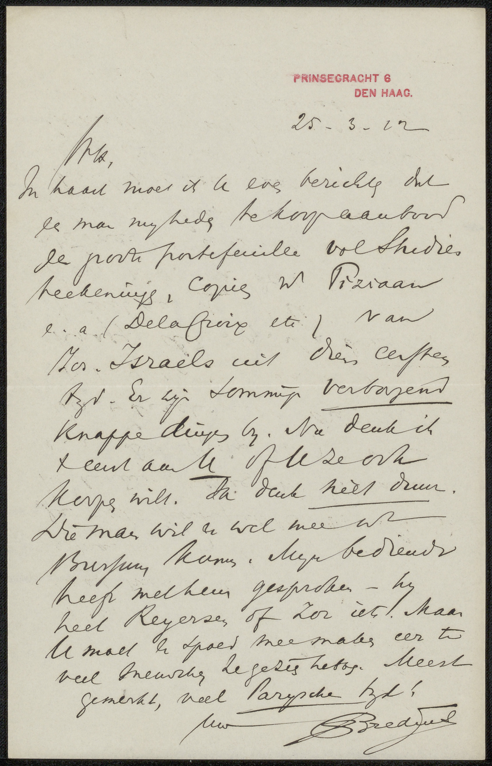 Brief aan Jan Veth en Anna Dorothea Dirks