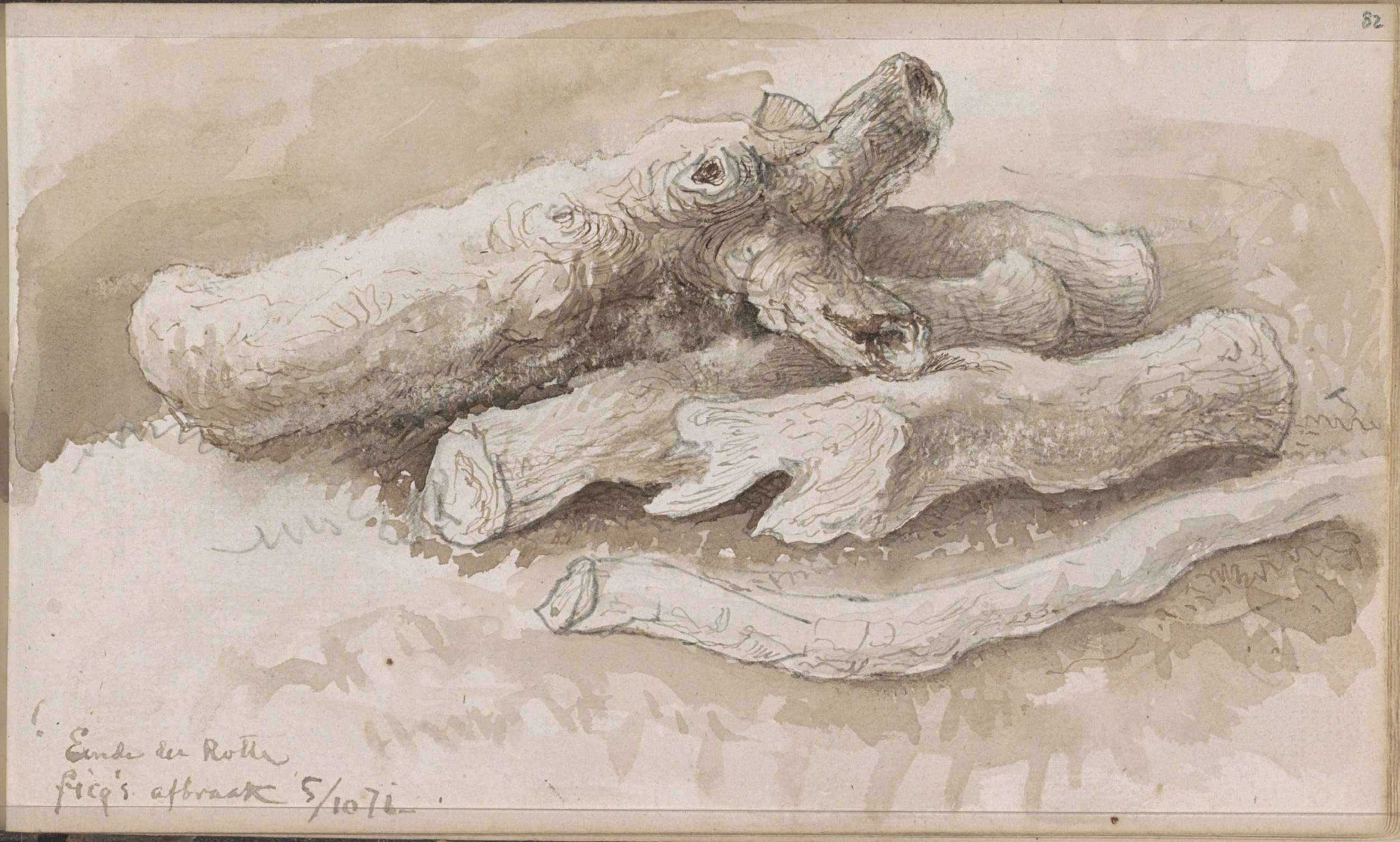 Stukken van boomstammen en takken