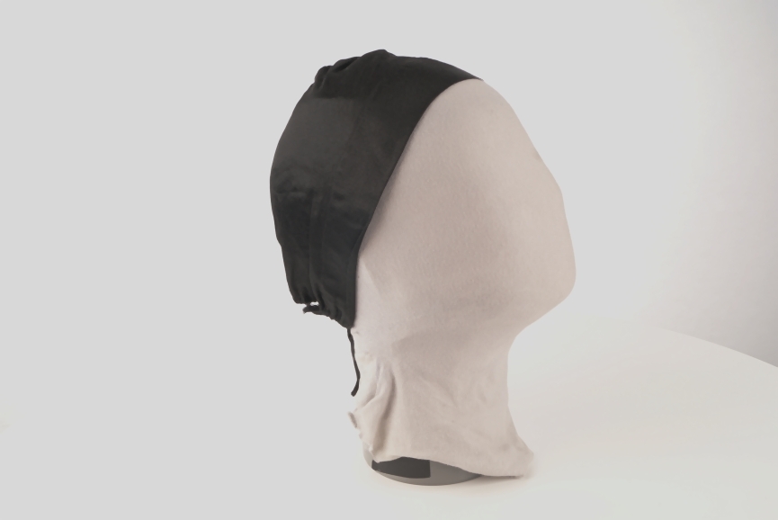 Twee mutsen: ondermuts van zwart satijn en gehaakte ...
