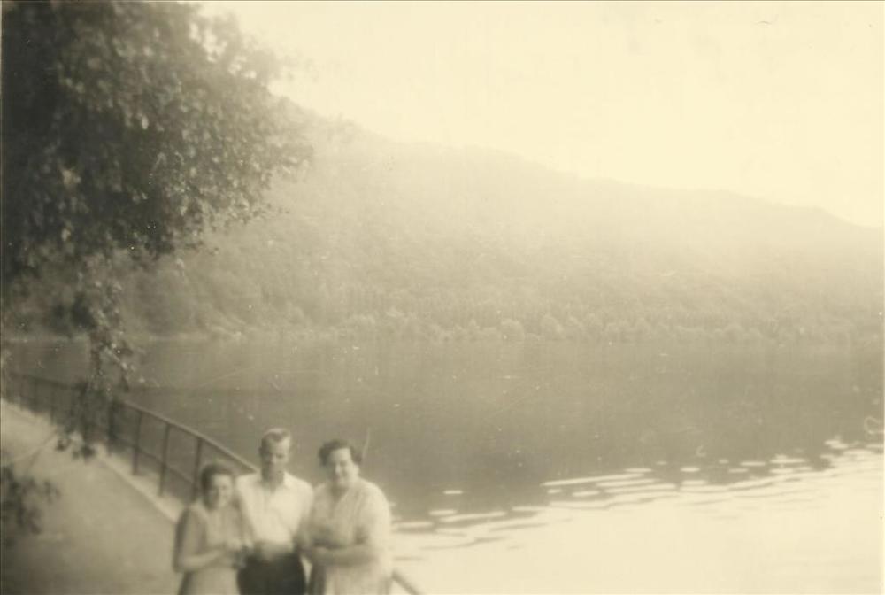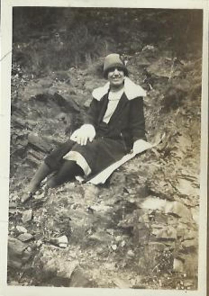 foto Vrouw met jas en hoedje op rotsen, 1928