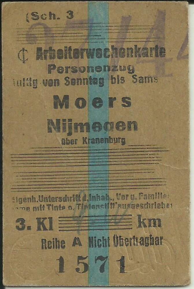 Treinkaartje, Arbeiterwochenkarte Moers - Nijmegen