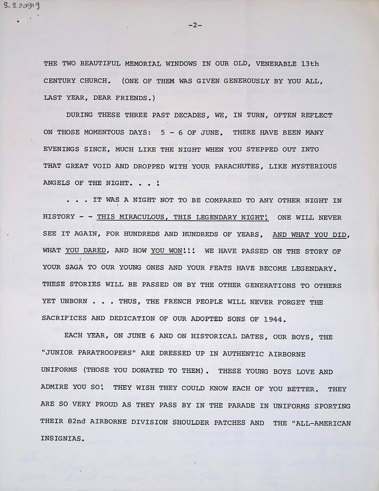 Documenten Gus Leegsma, Afschrift toespraak madame A...
