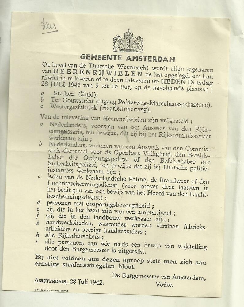 Gemeente Amsterdam, 8 juli 1942