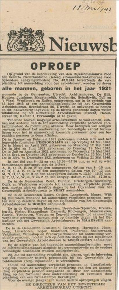 Utrechtsch Nieuwsblad, 12 mei 1943