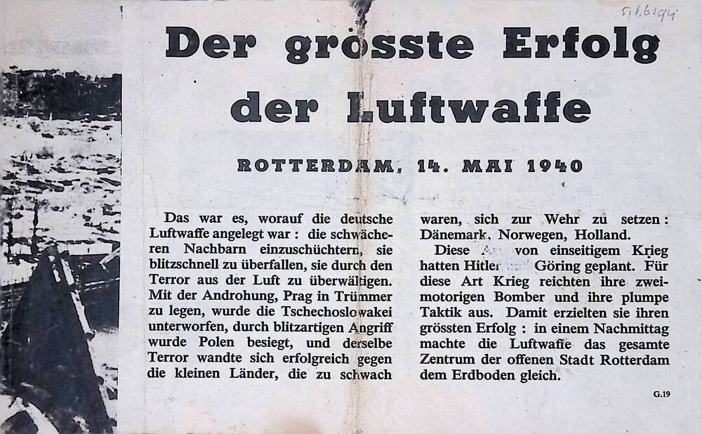 Pamflet: "Die grösste Erfolg der Luftwaffe, Rotterda...
