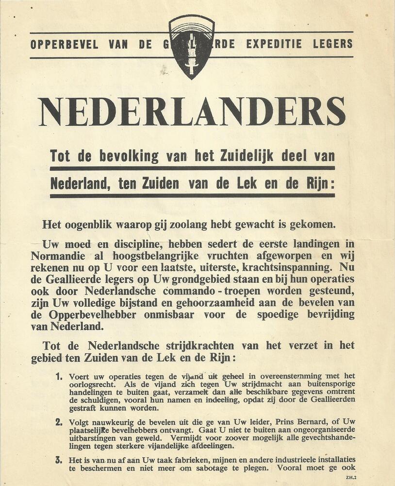 Pamflet: "Nederlanders. Tot de bevolking in het Zuid...