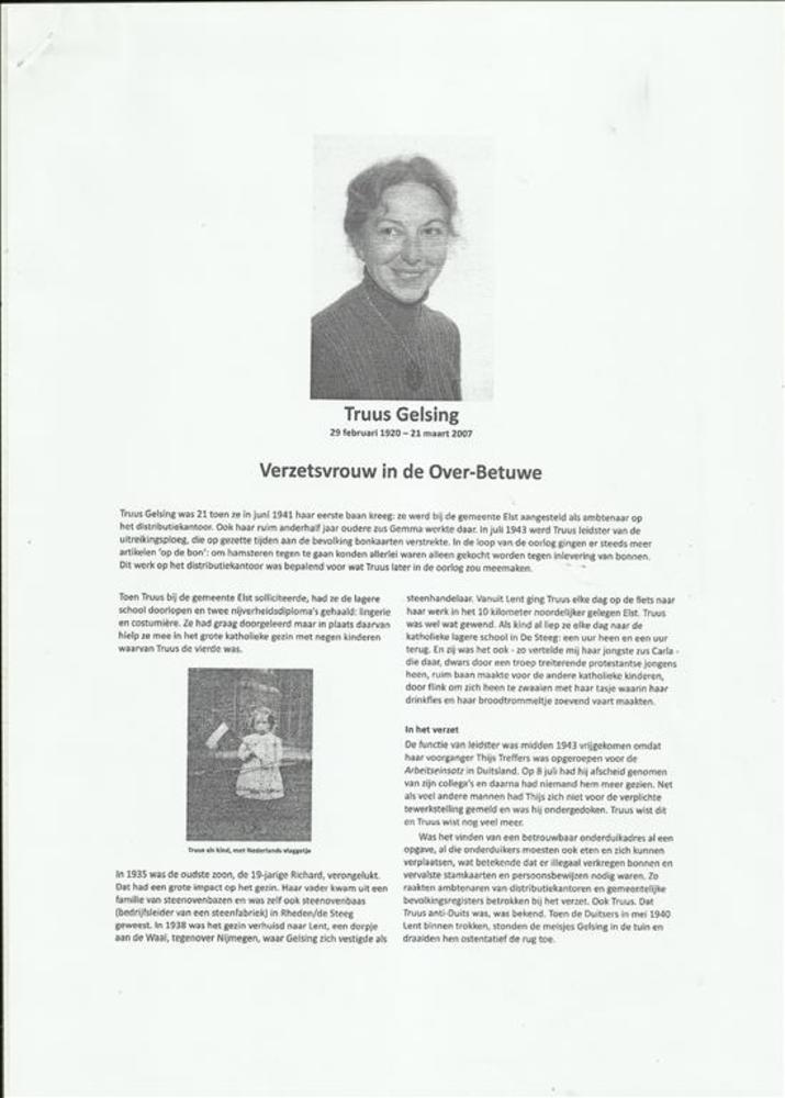 Verhaal van Truus Gelsing, verzetsvrouw in de Overbe...