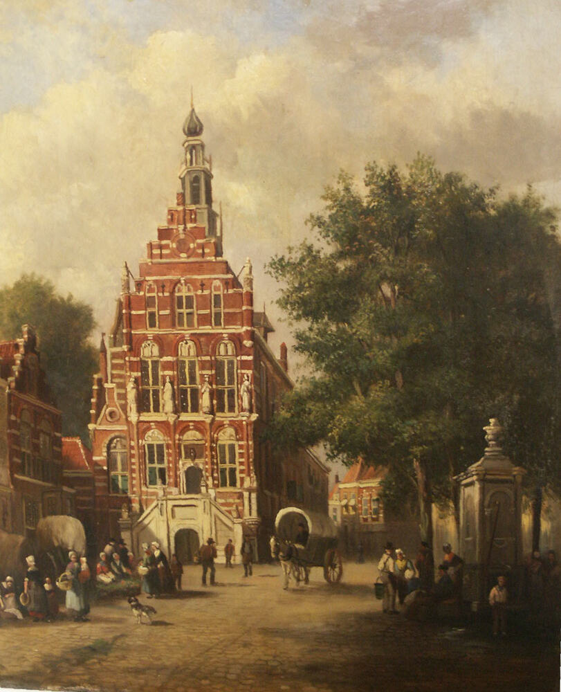 De Langestraat richting Markt.links= de Gemeente sch...