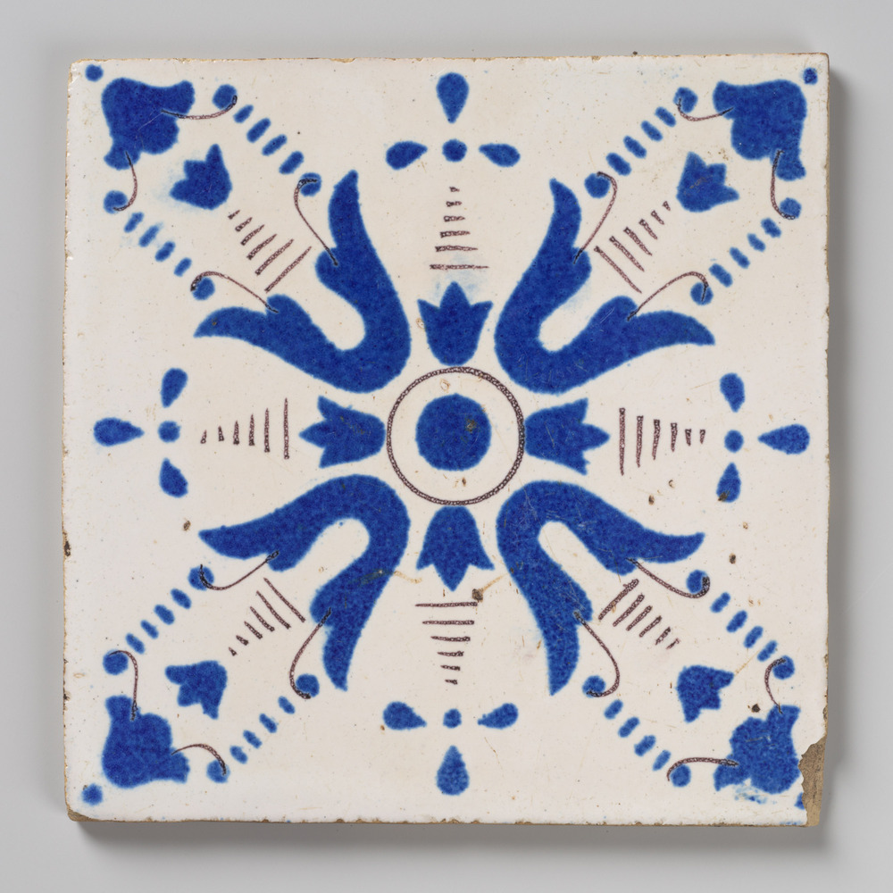tegel van aardewerk met tinglazuur, voorstellende: o...