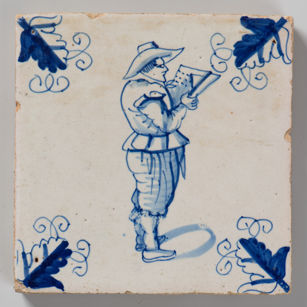 tegel van aardewerk met tinglazuur, voorstellende: m...
