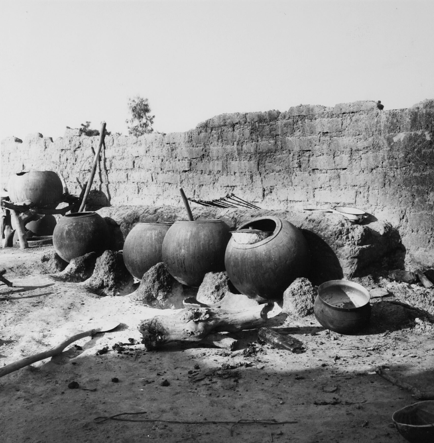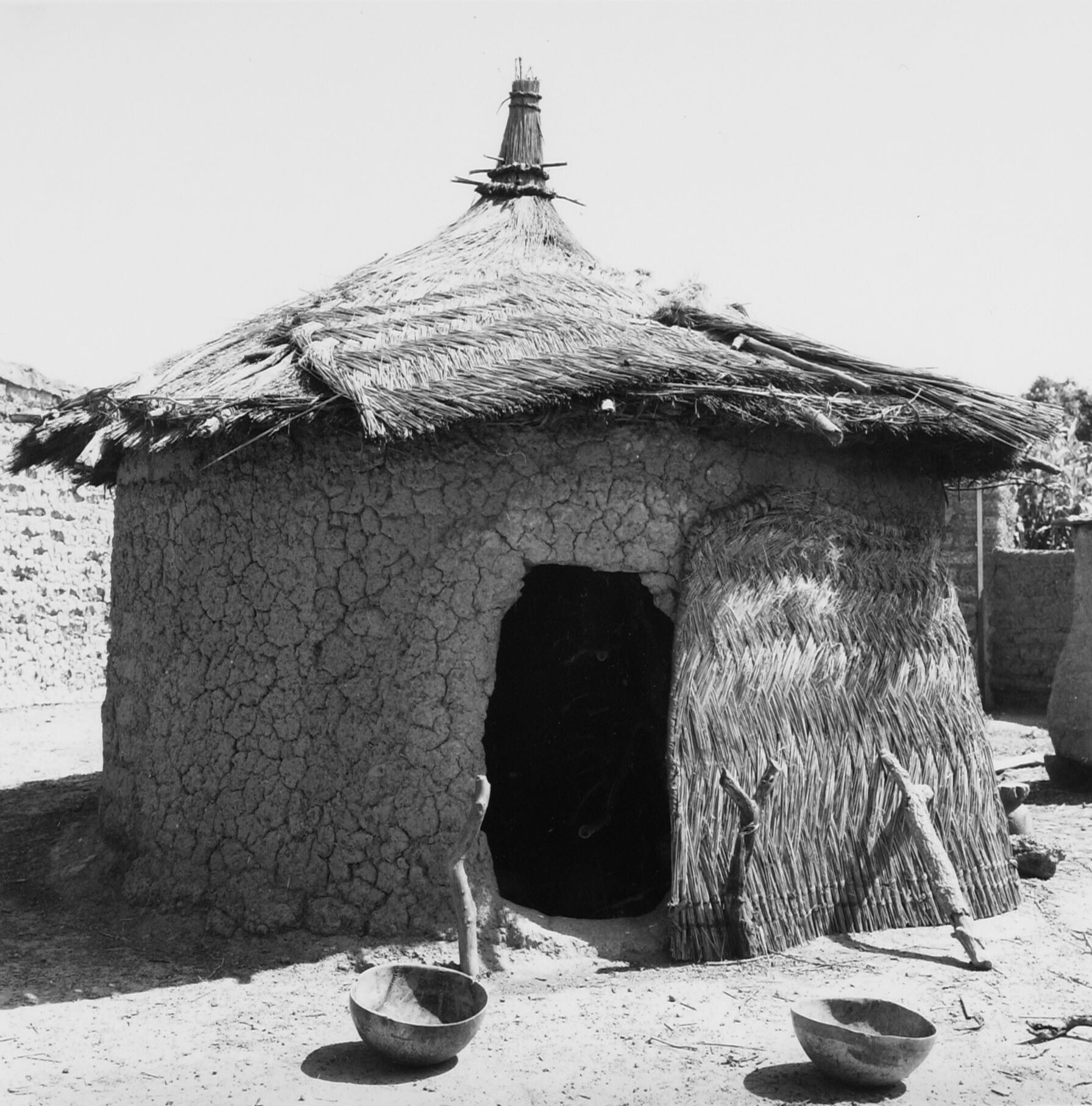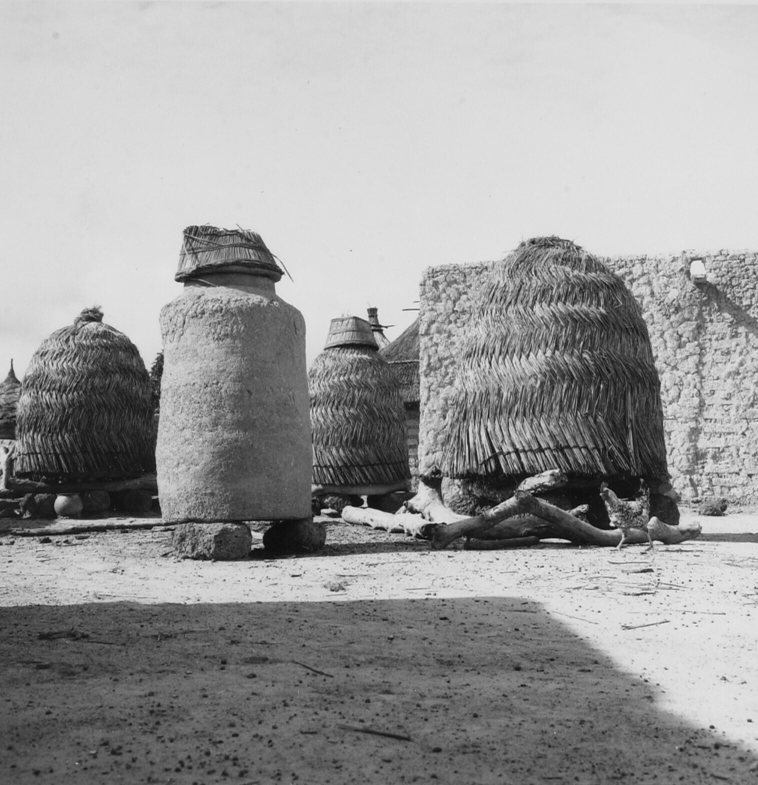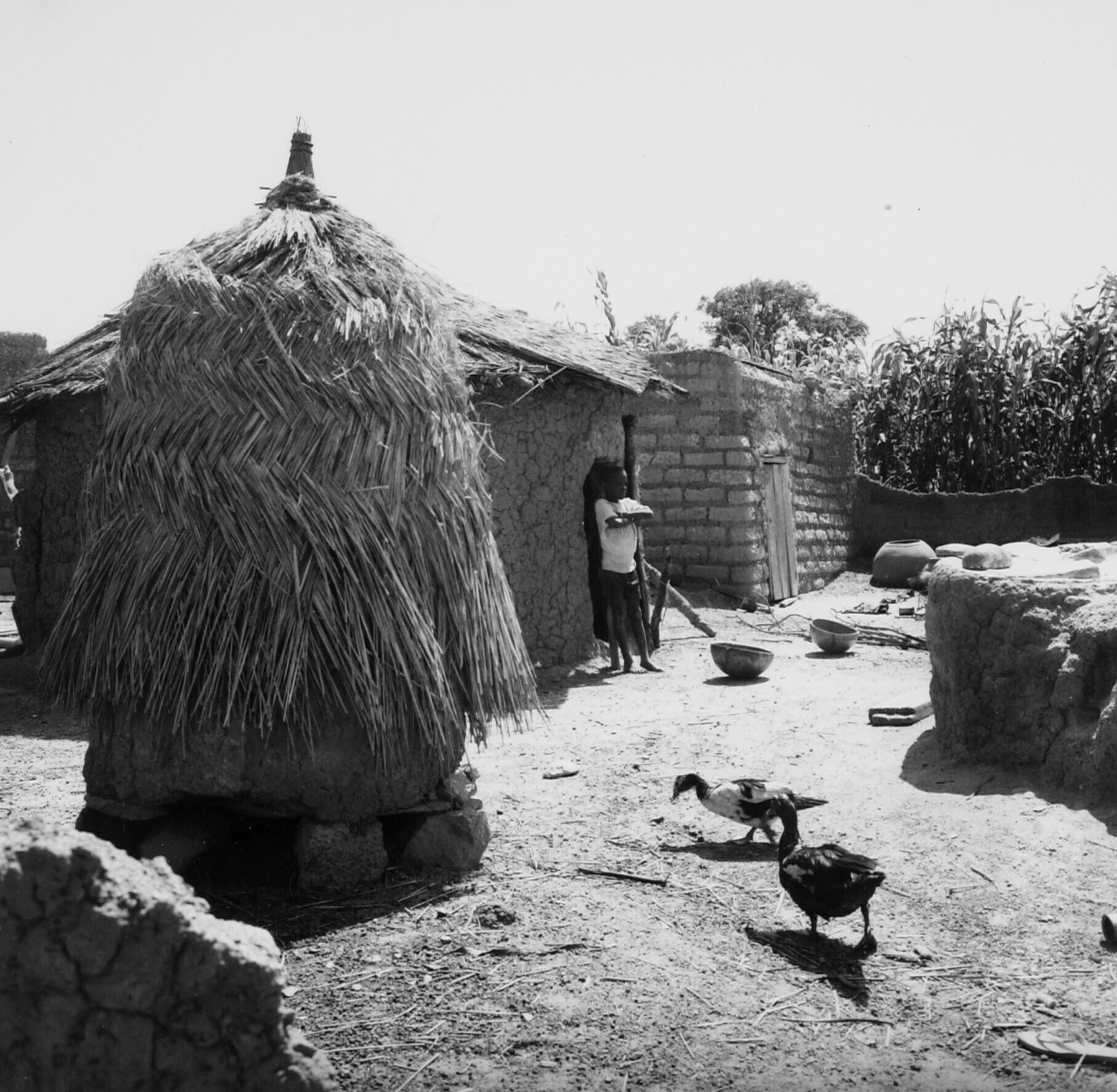 Deel van een Mossi erf met op de voorgrond een opsla...