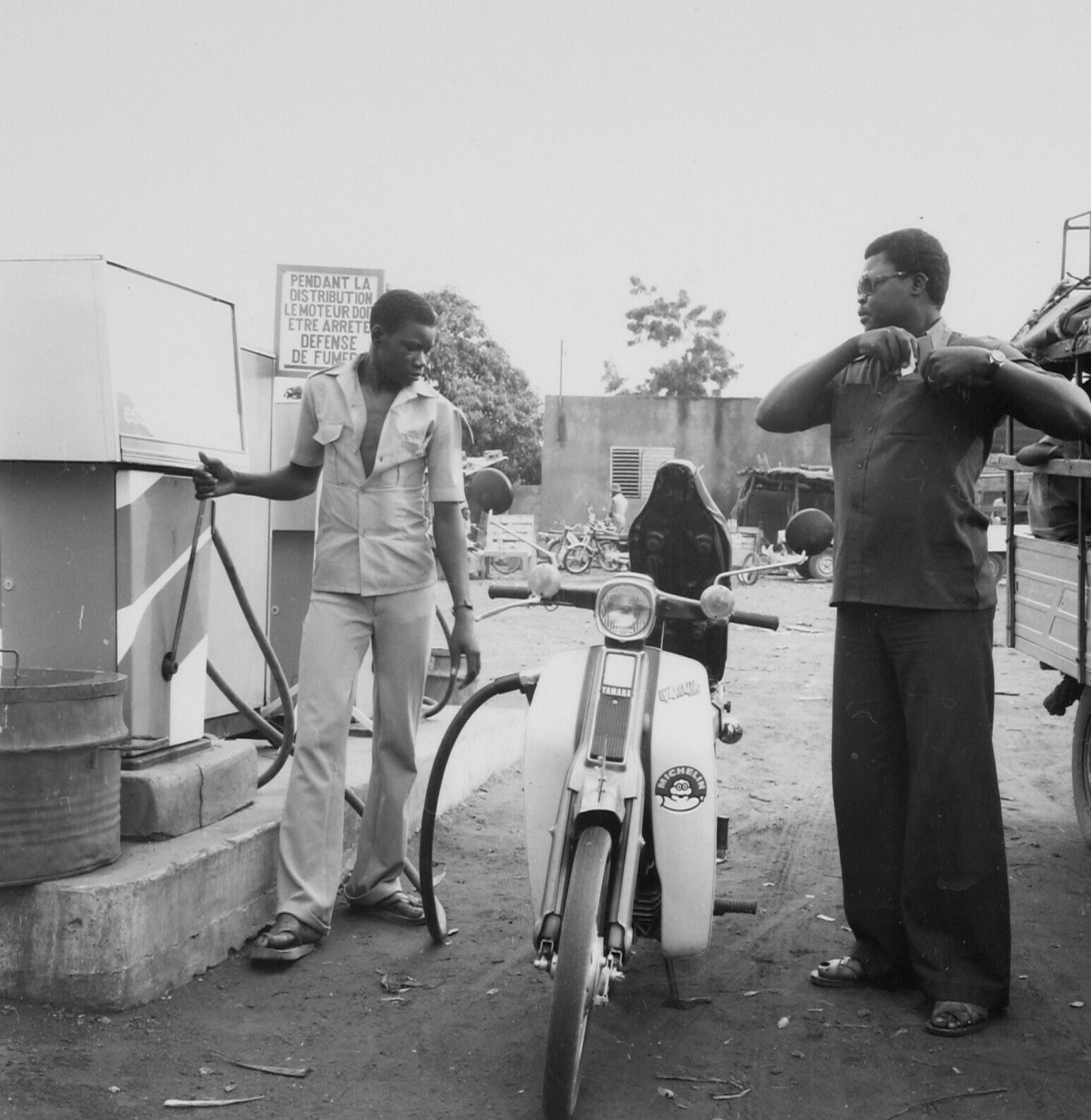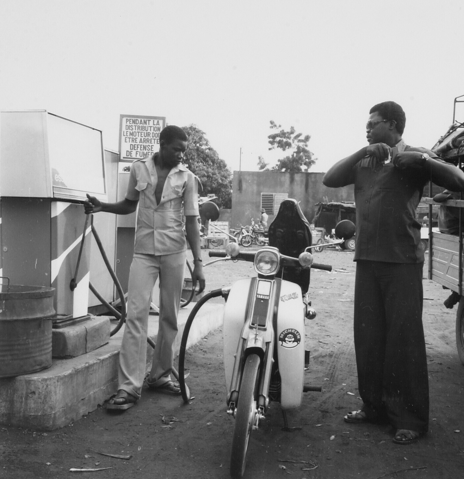 Een brommer wordt volgetankt bij een benzinestation ...