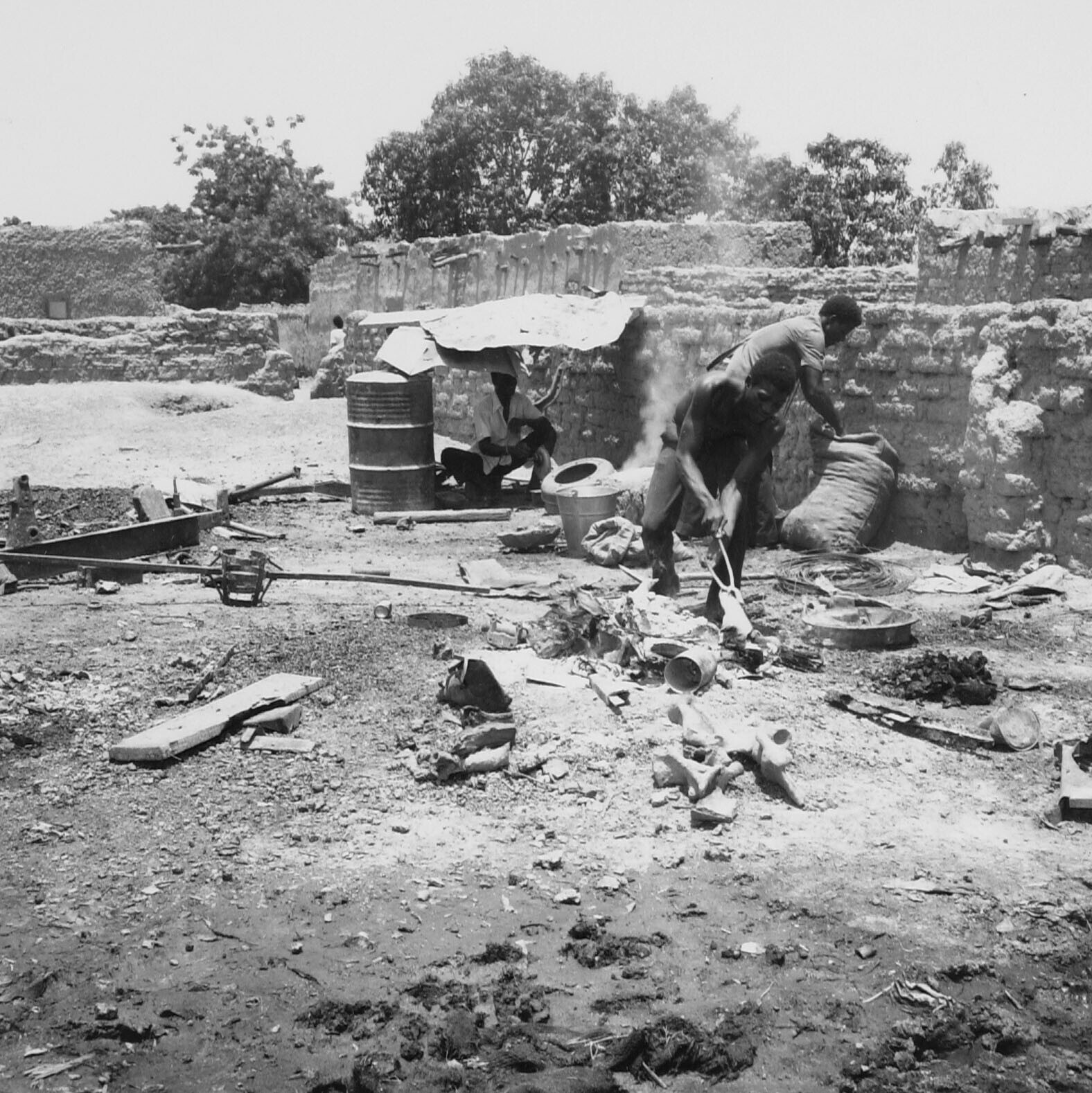 De binnenplaats van een bronsgieterij te Ouagadougou...