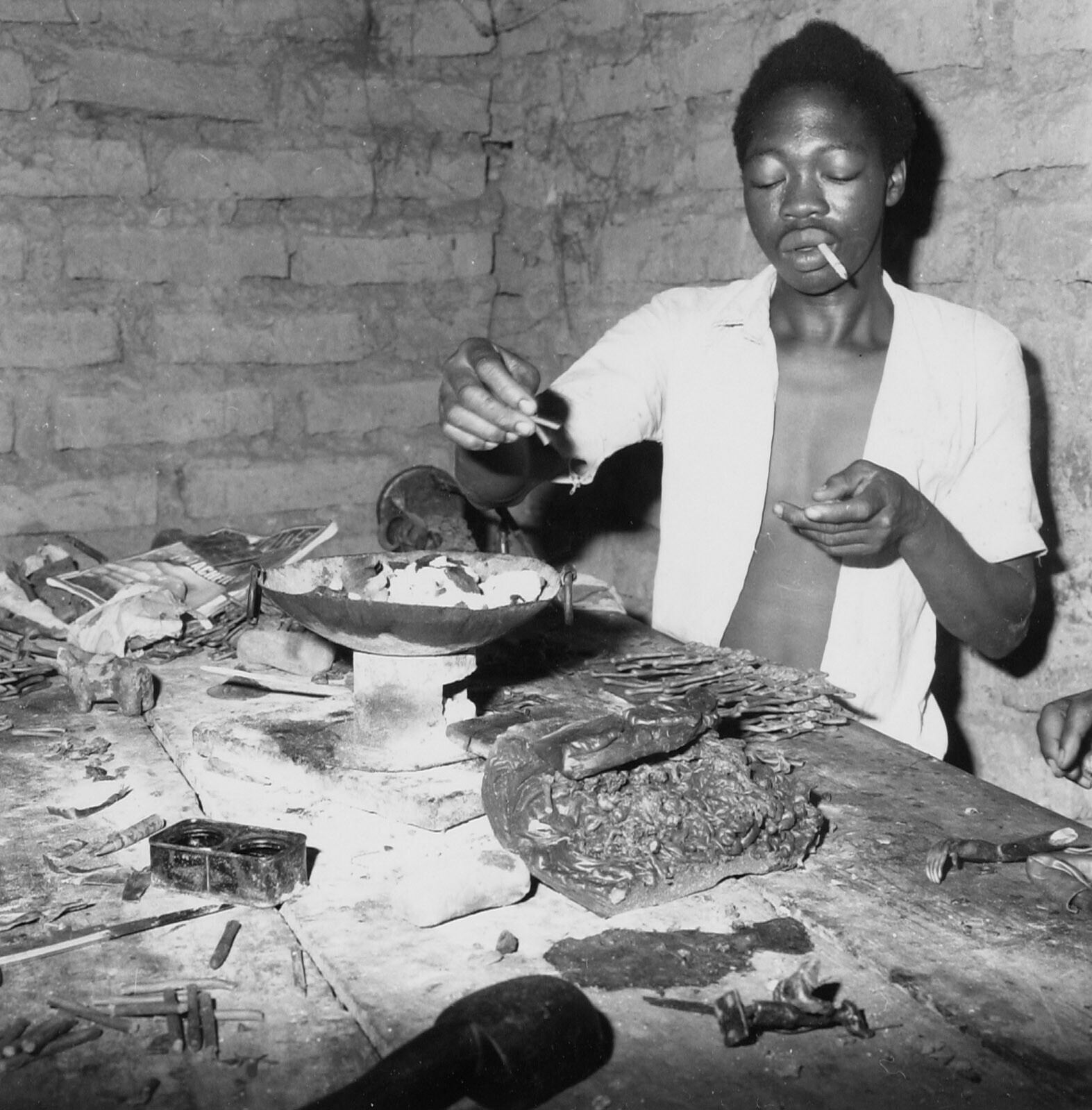 Bronsfiguren gemaakt in een bronsgieterij te Ouagado...