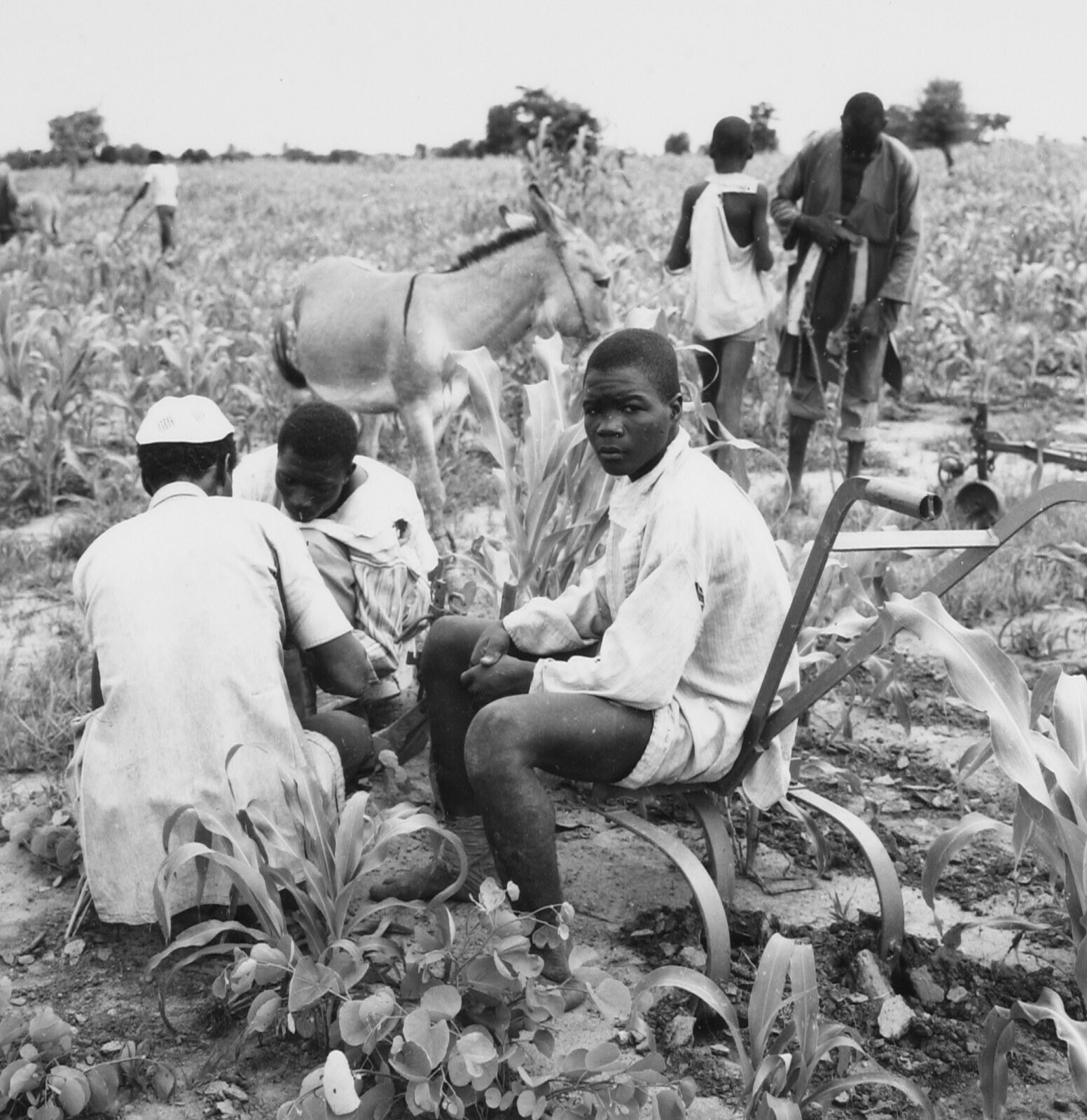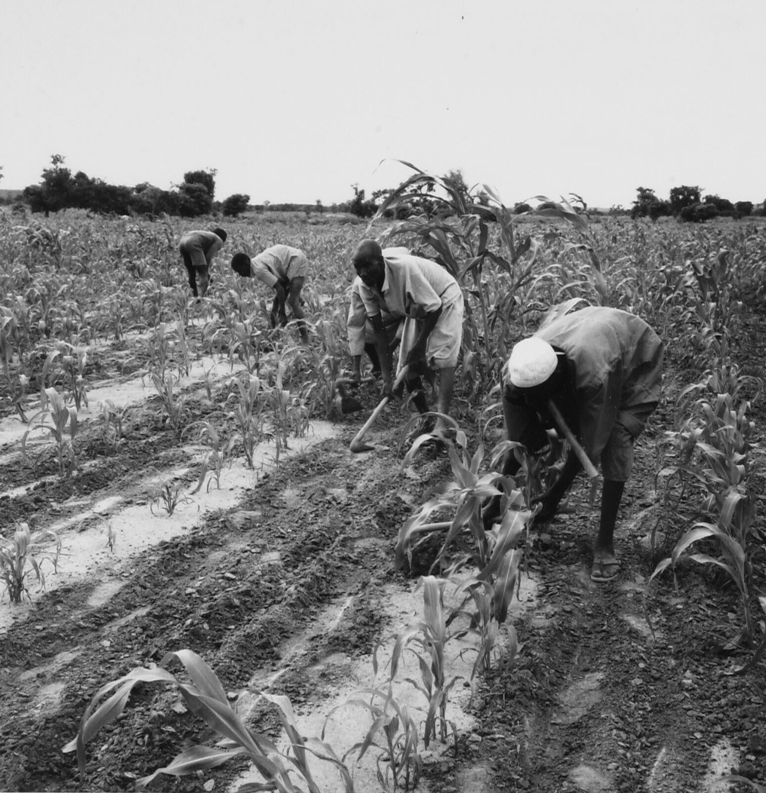 Het wieden van een gierst veld