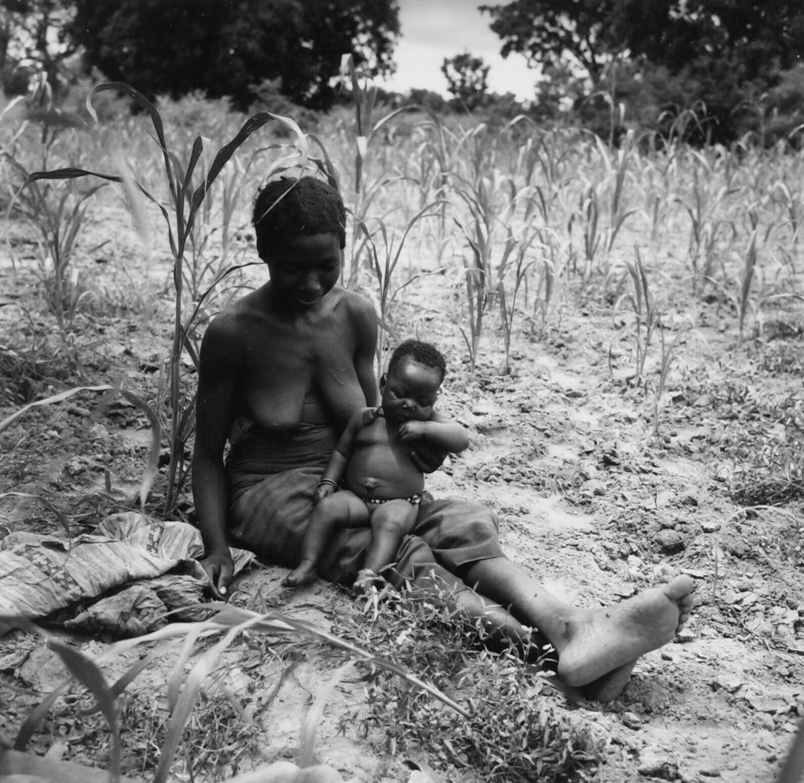 Moeder en kind in een milletveld