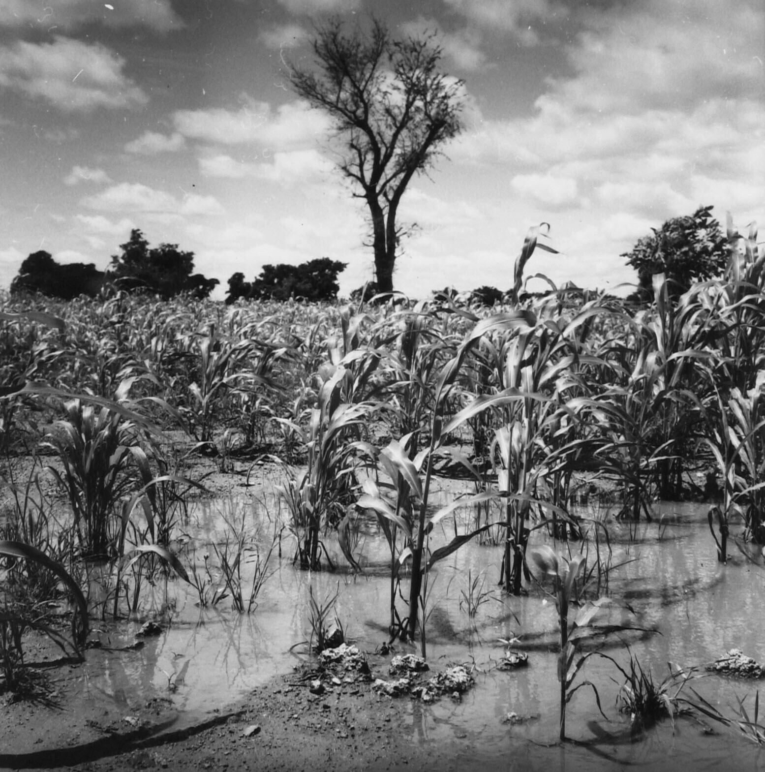 Een als gevolg van de regen ondergelopen millet-aanp...