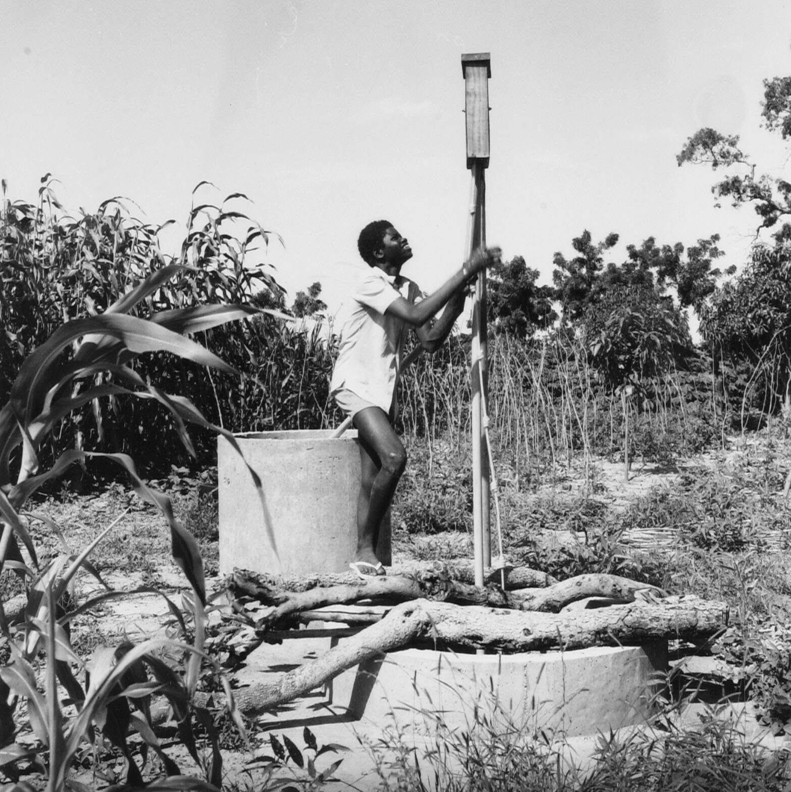 De 'Peace-Corper' David toont in Kaya een proefmodel...