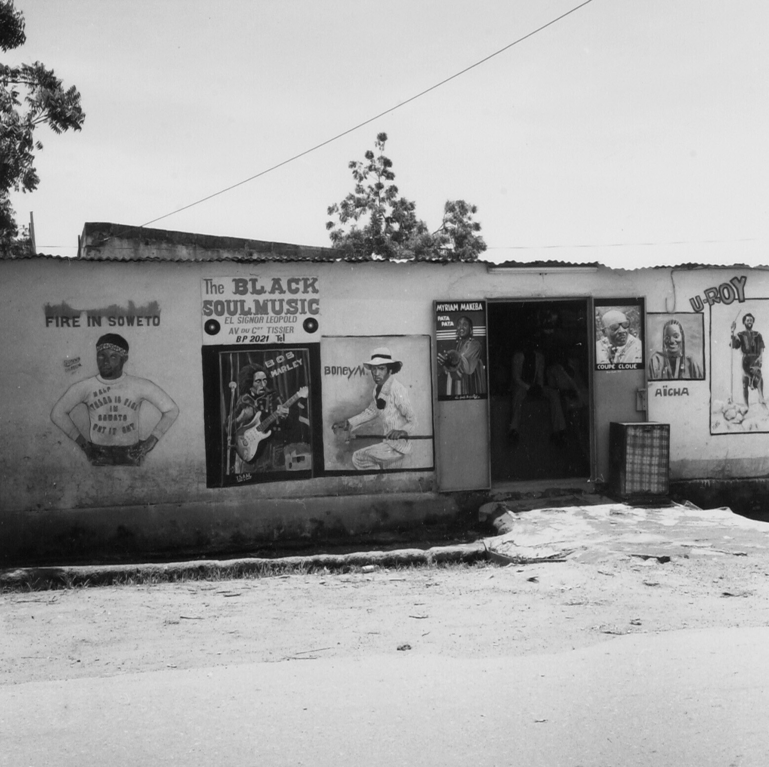 Het grote theater in Ouagadougou met twee standbeeld...