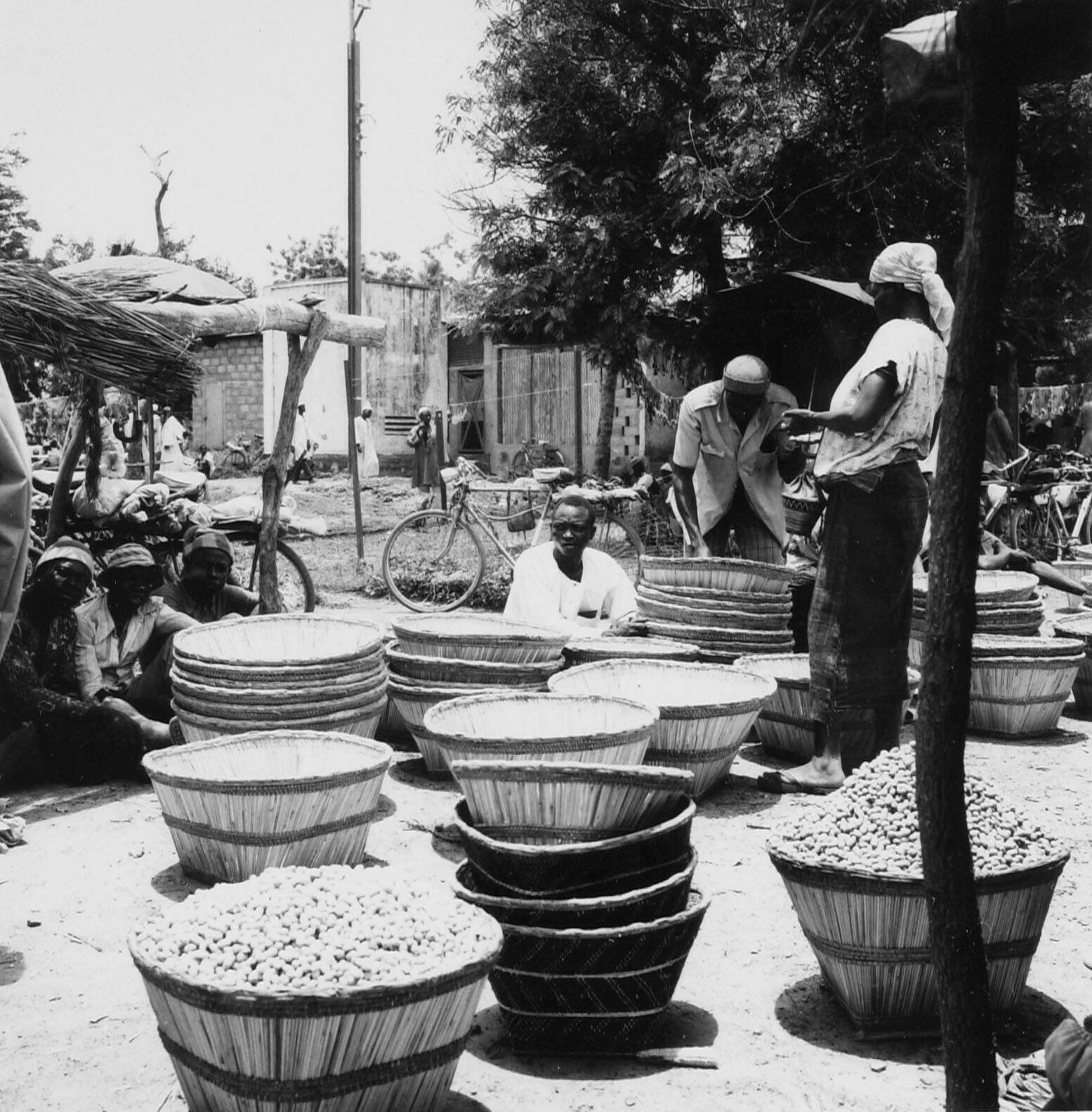 Verkoop van rieten manden op de markt te Kaya