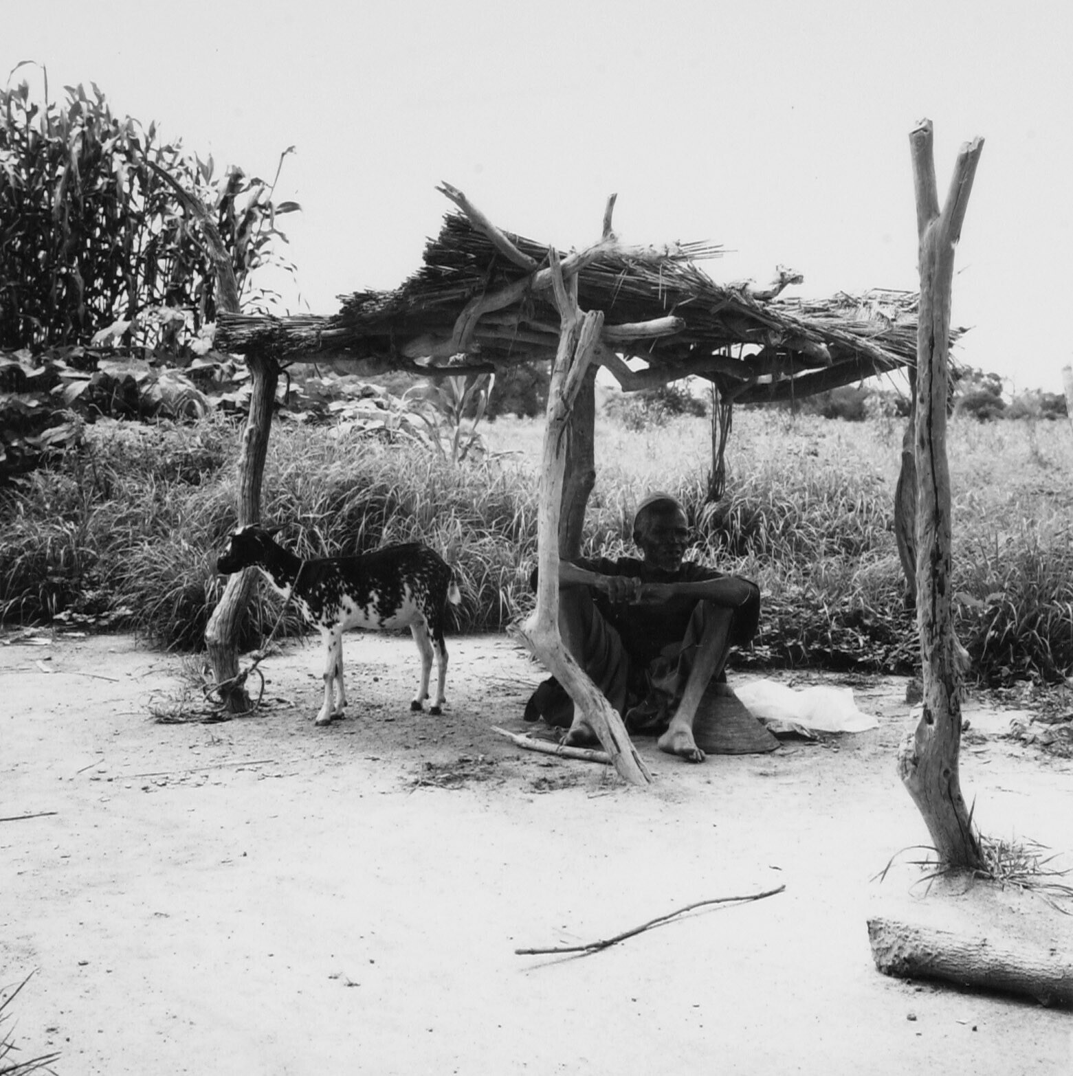 Zicht op een Mossi erf met op de voorgrond enkele aa...