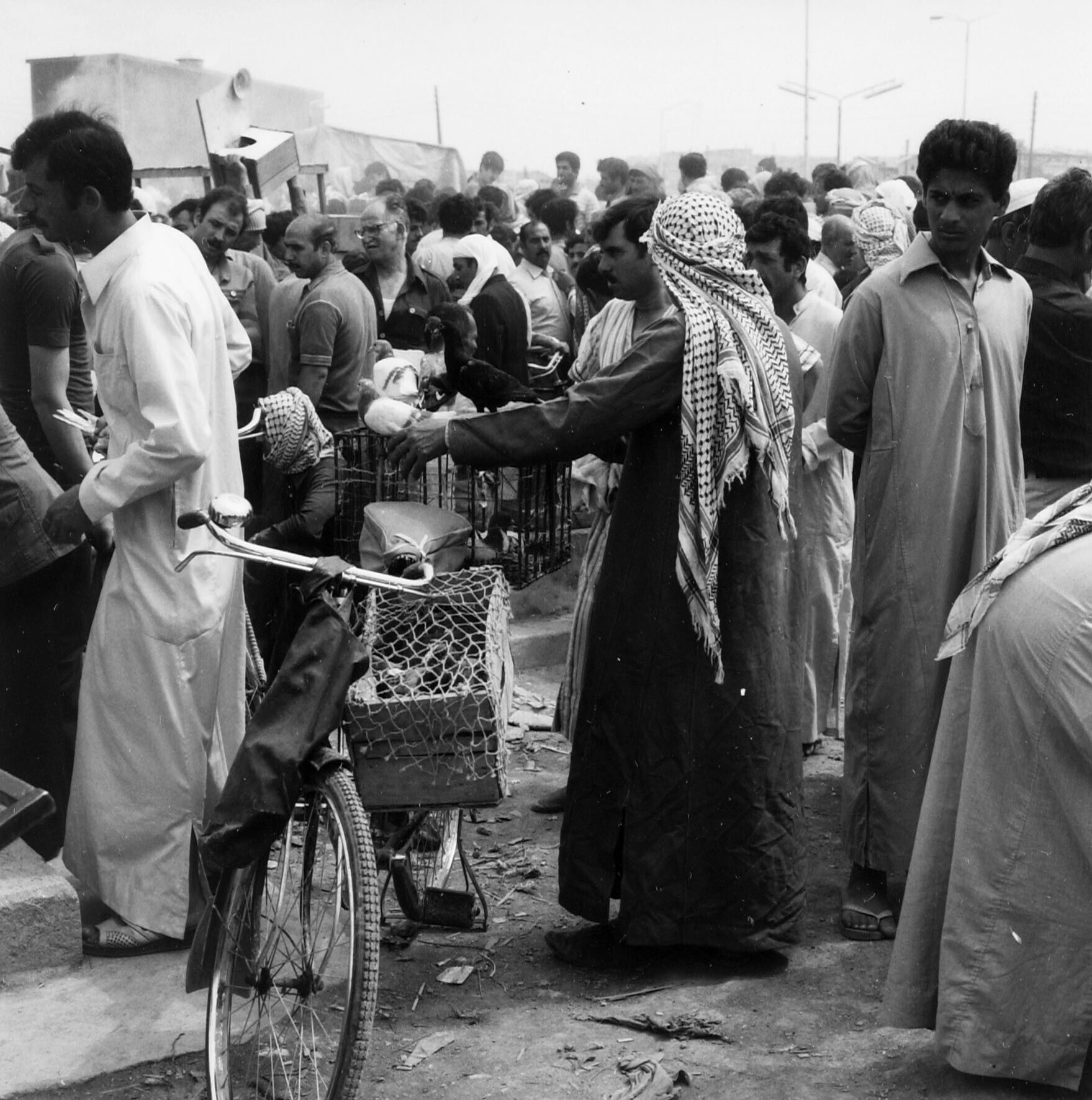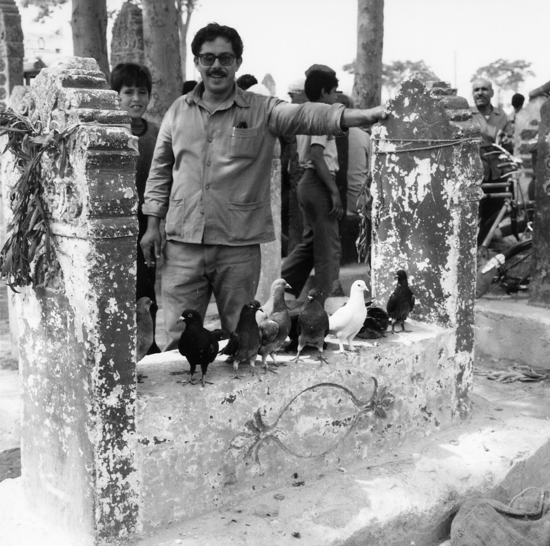 Pigeon seller at a market located on a cemetery