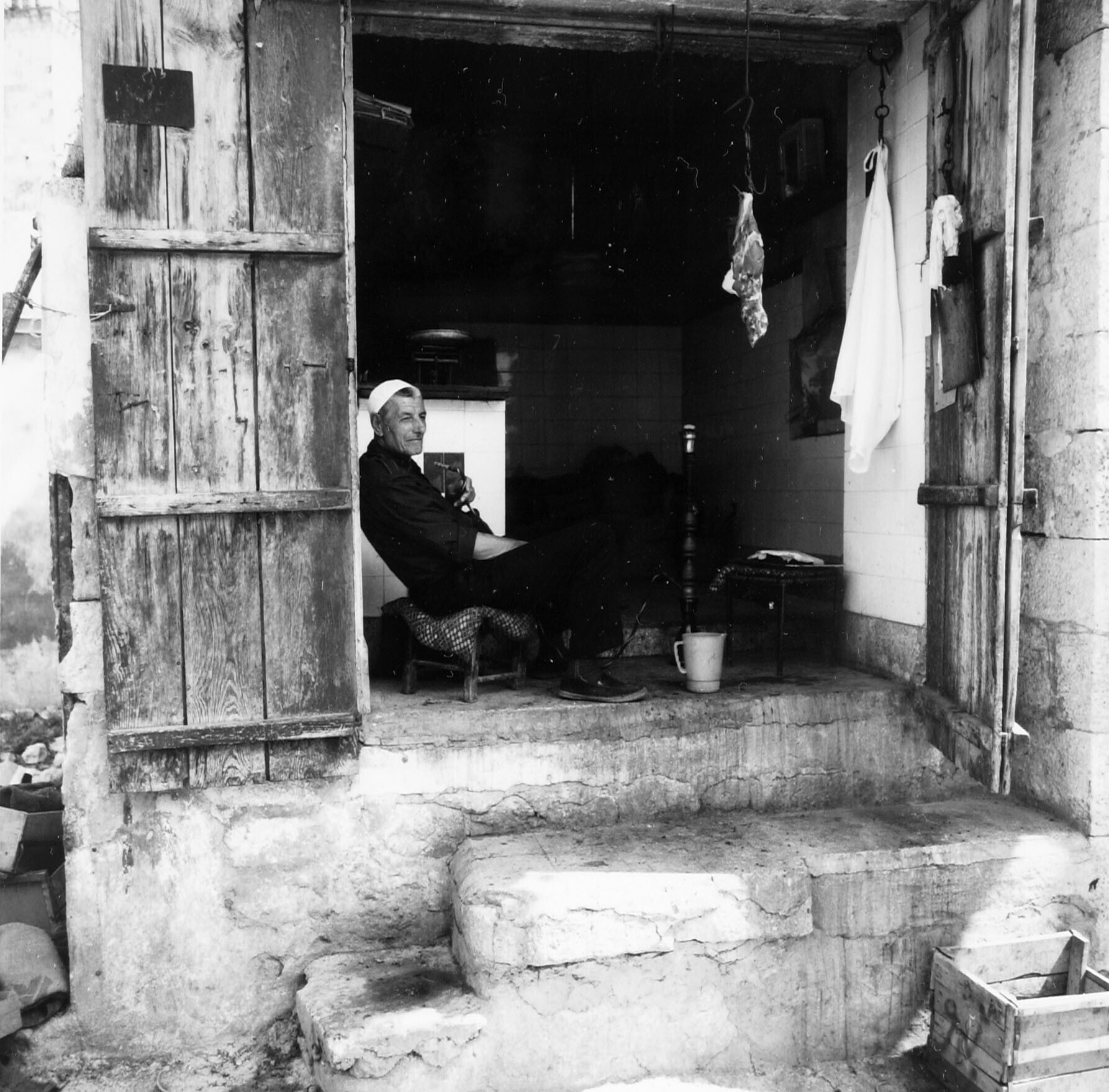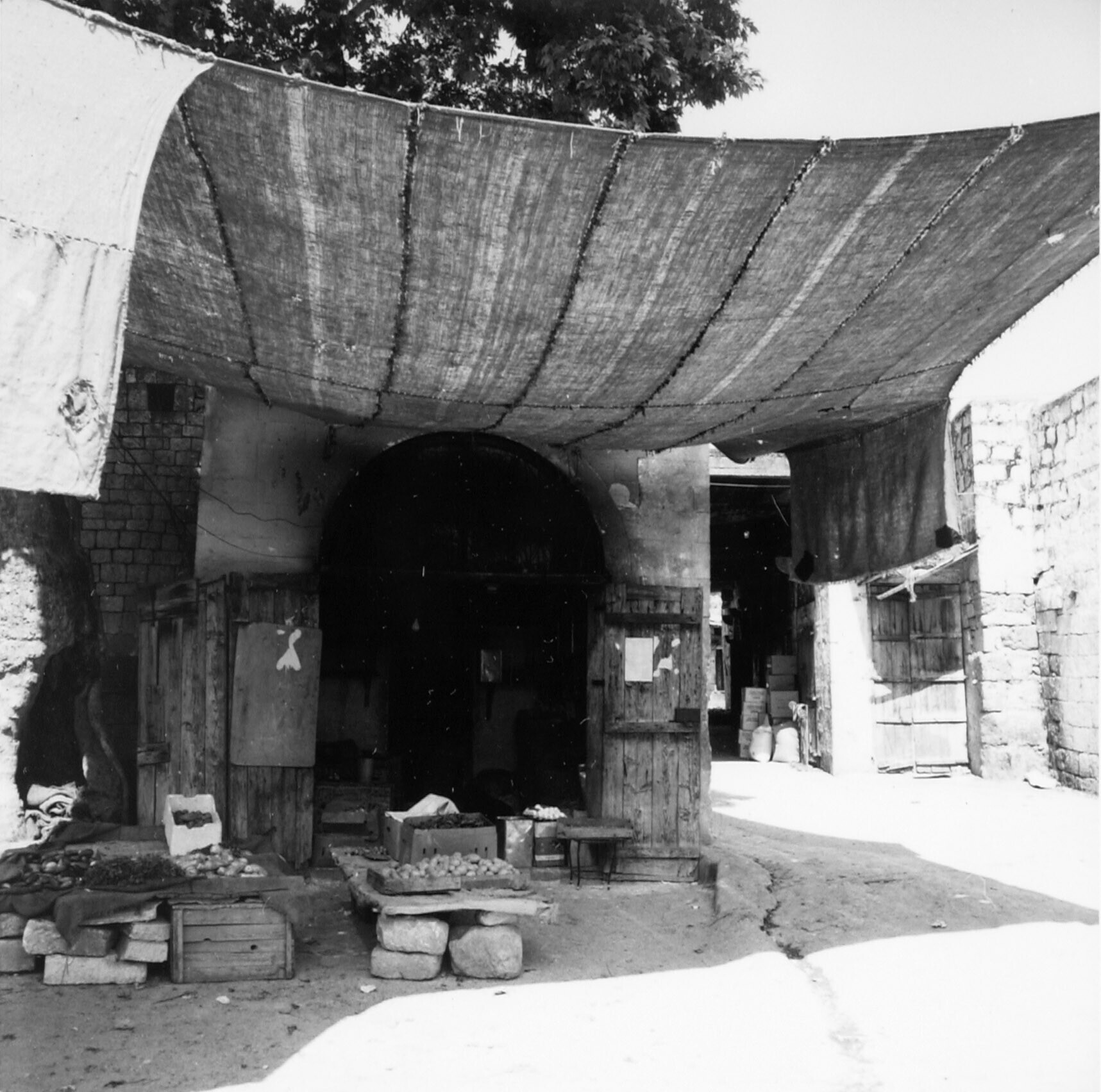 Boer voor ingang bijenkorfwoning te Aleppo