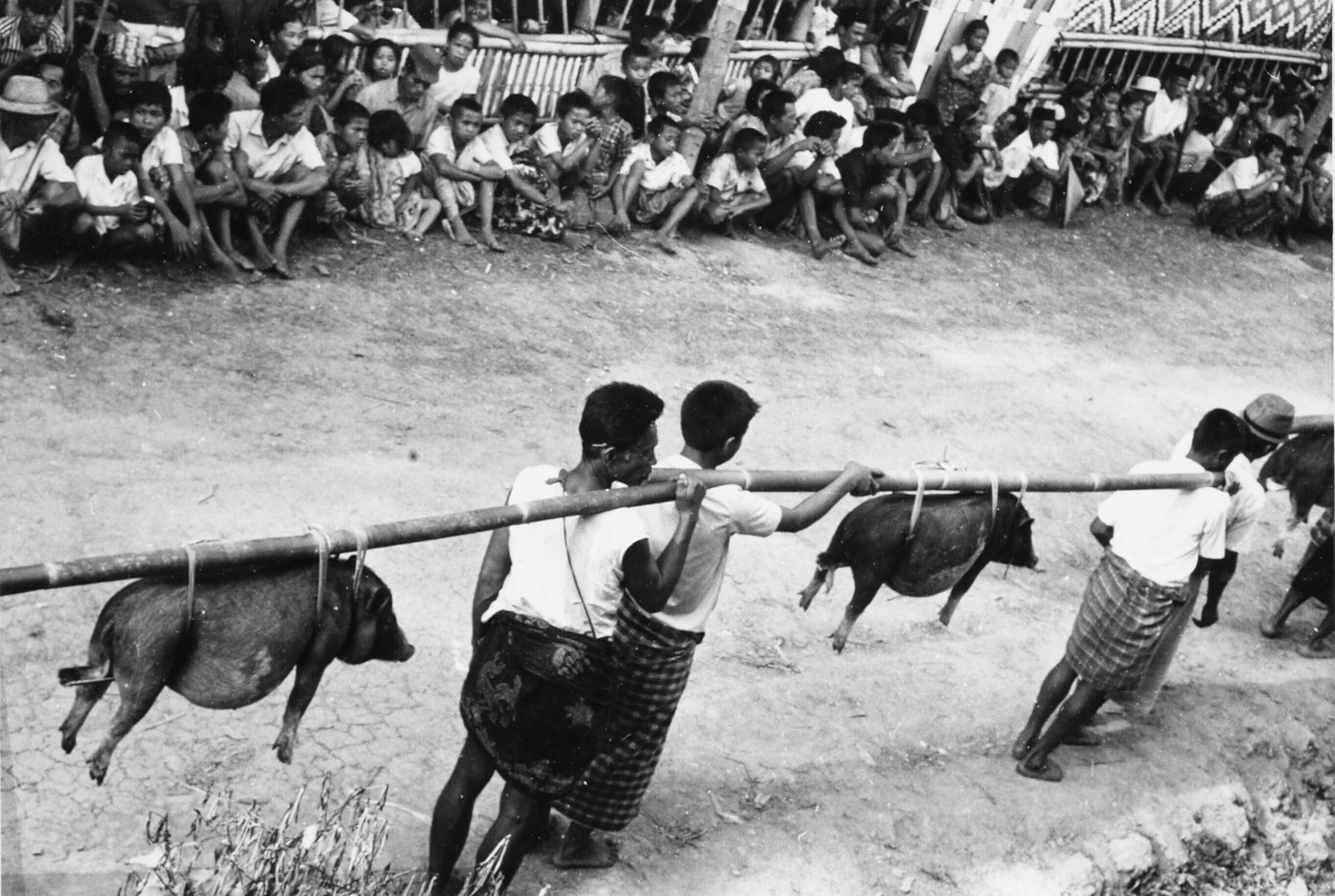 De aanvoer van de varkens op het dodenfeest van Sang...