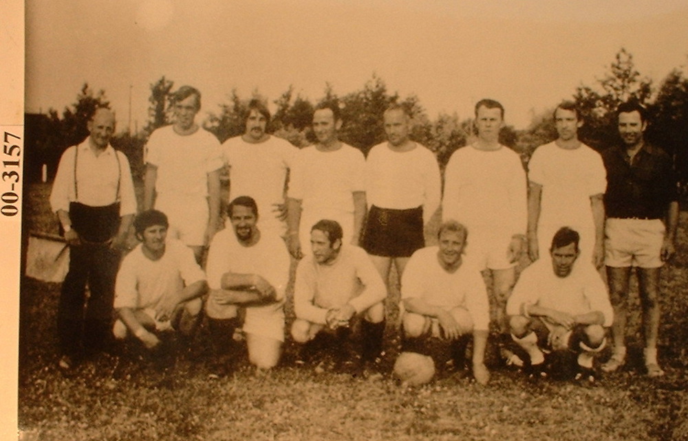 Zwart-wit foto van de dansgarde van de Rienspiekers ...
