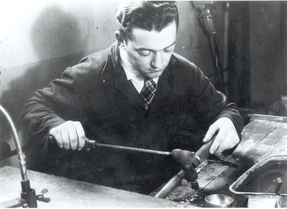 gieten van tin in een vorm bij firma Daalderop te Tiel