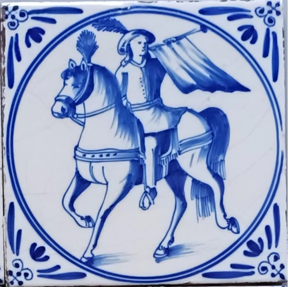 tegel van keramiek met tinglazuur, voorstellende: ru...