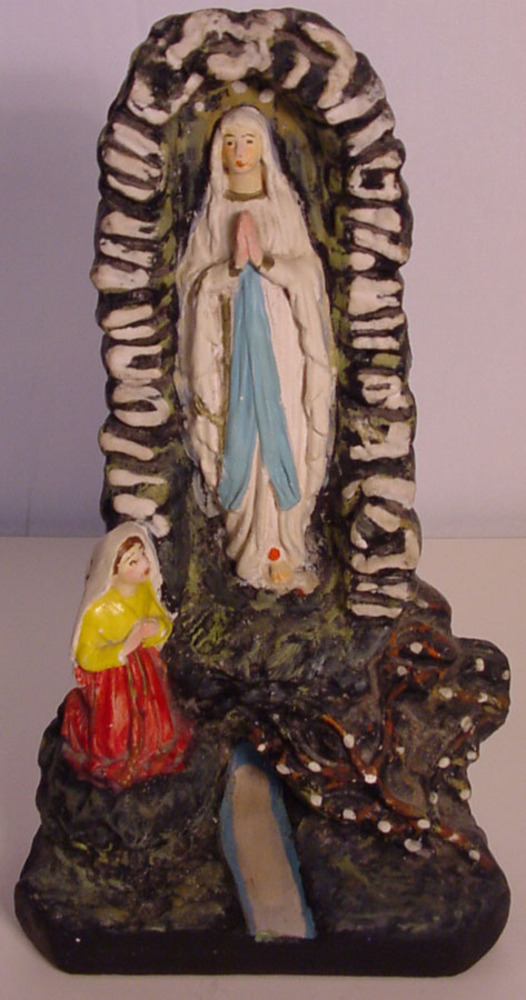 Beeld van gips voorstellend Maria in de grot te Lour...
