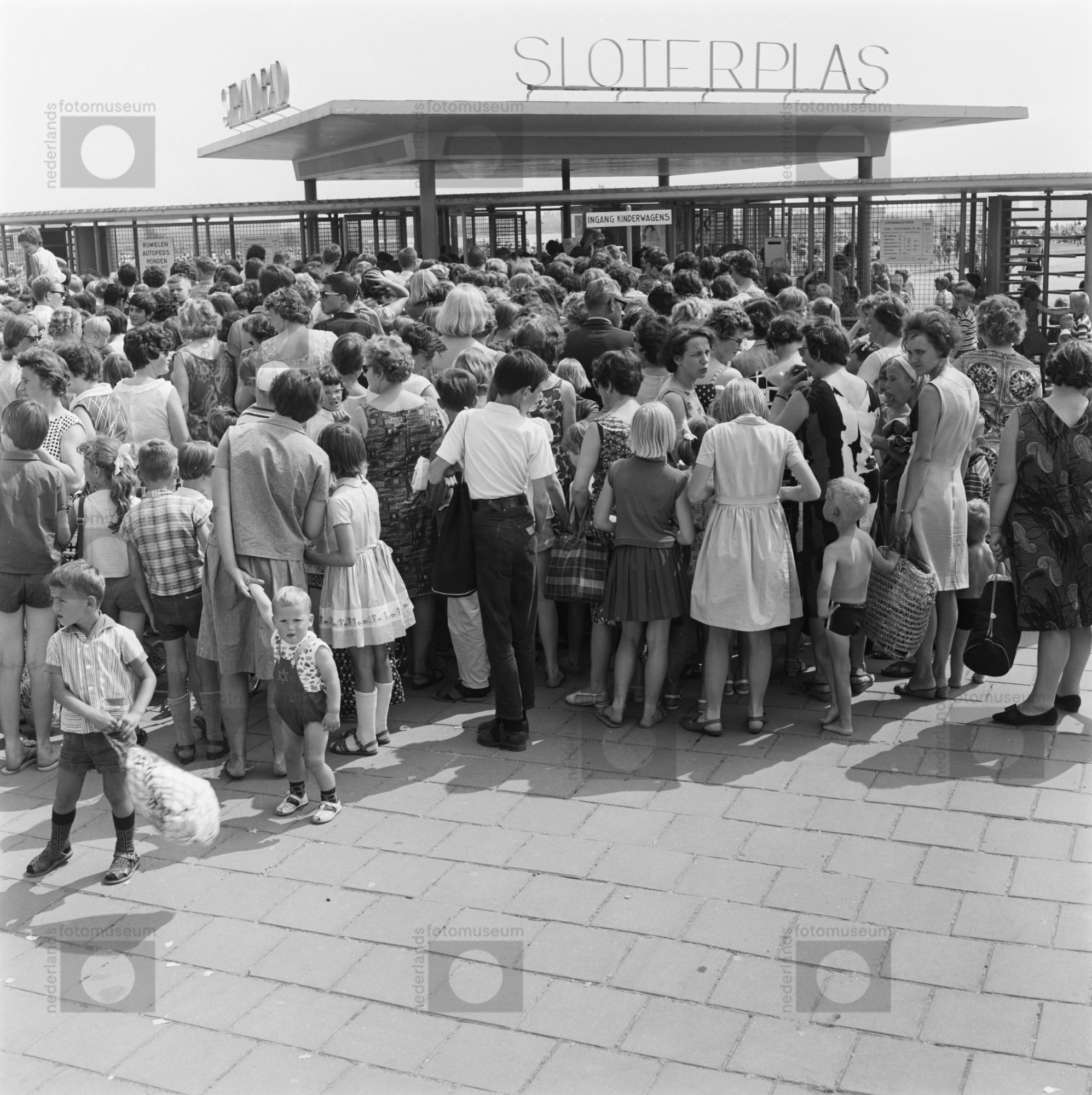 Amsterdam. Strandbad Sloterplas. Drukte voor de ingang.