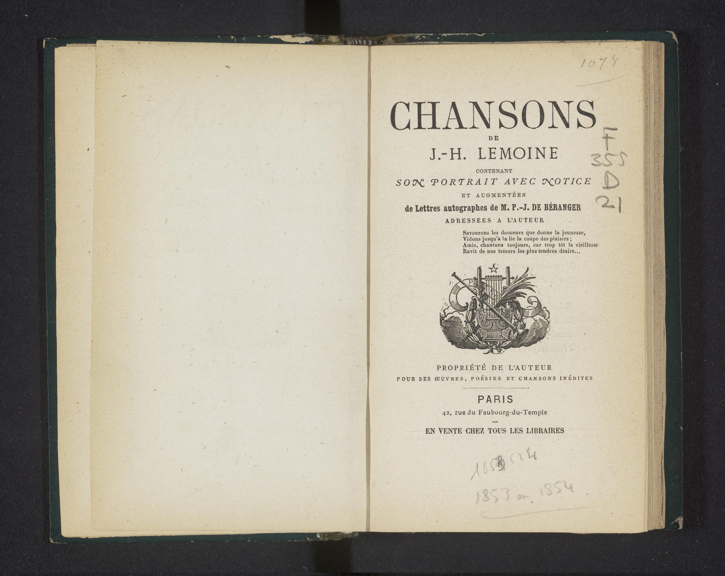 Chansons de J.-H. Lemoine contenant son portrait ave...