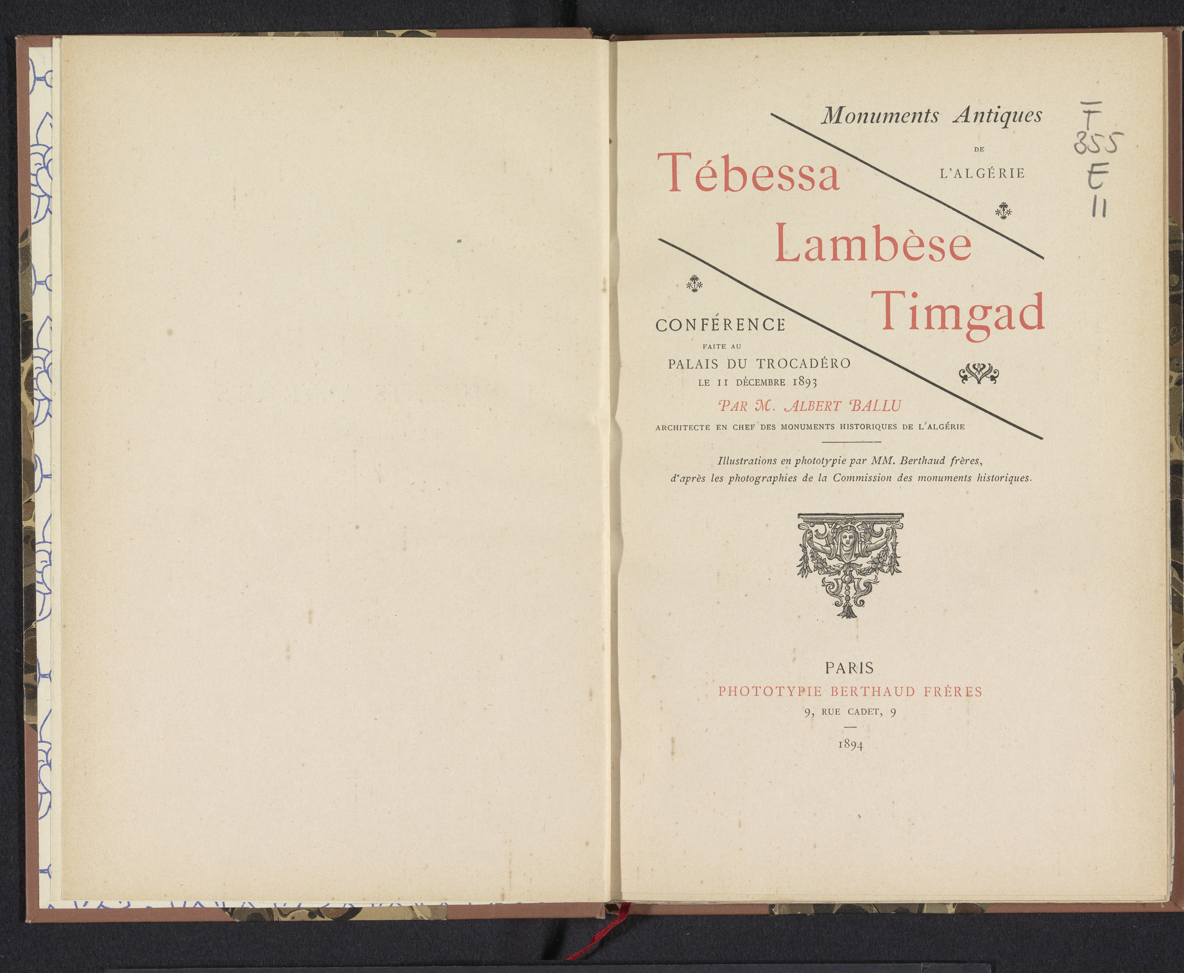 Monuments antiques de l'Algérie : Tébessa, Lambèse, ...