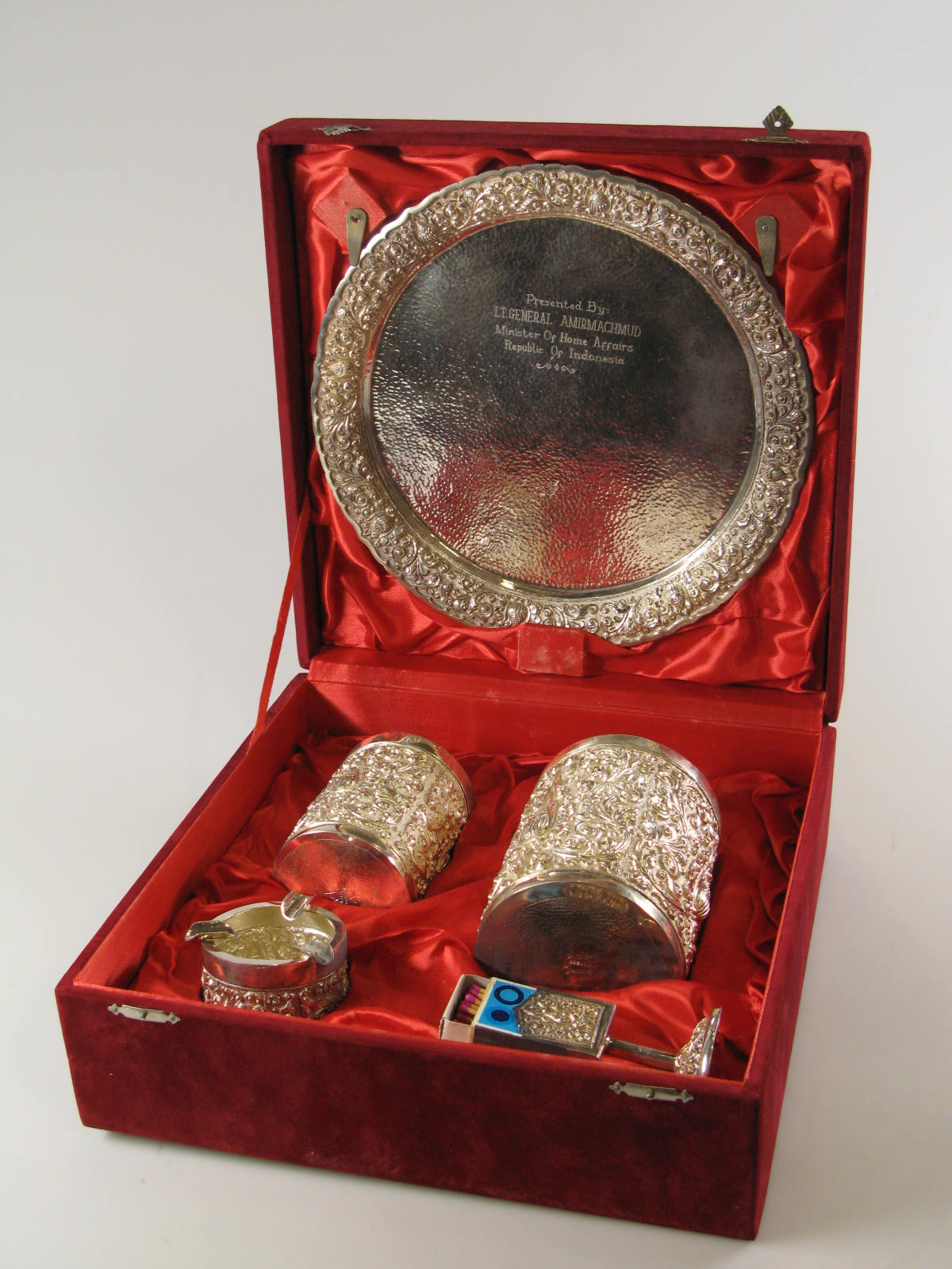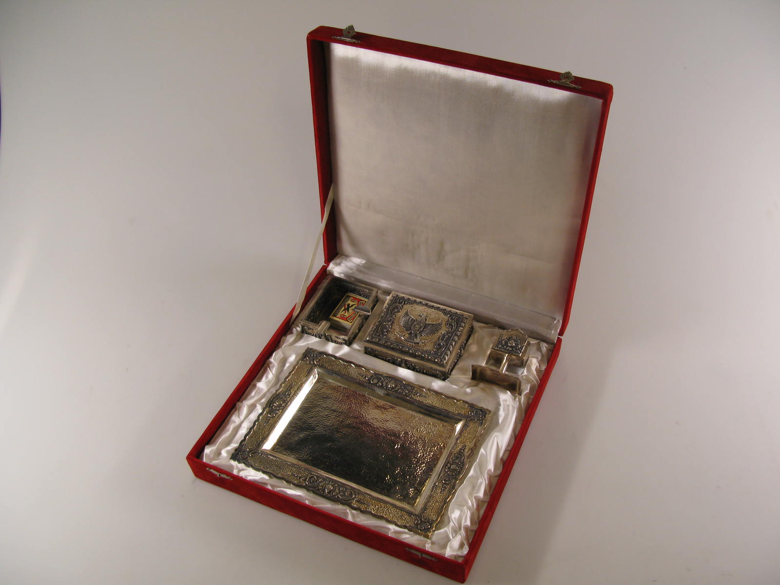 Kistje met verschillende rokersbenodigdheden uit Ind...