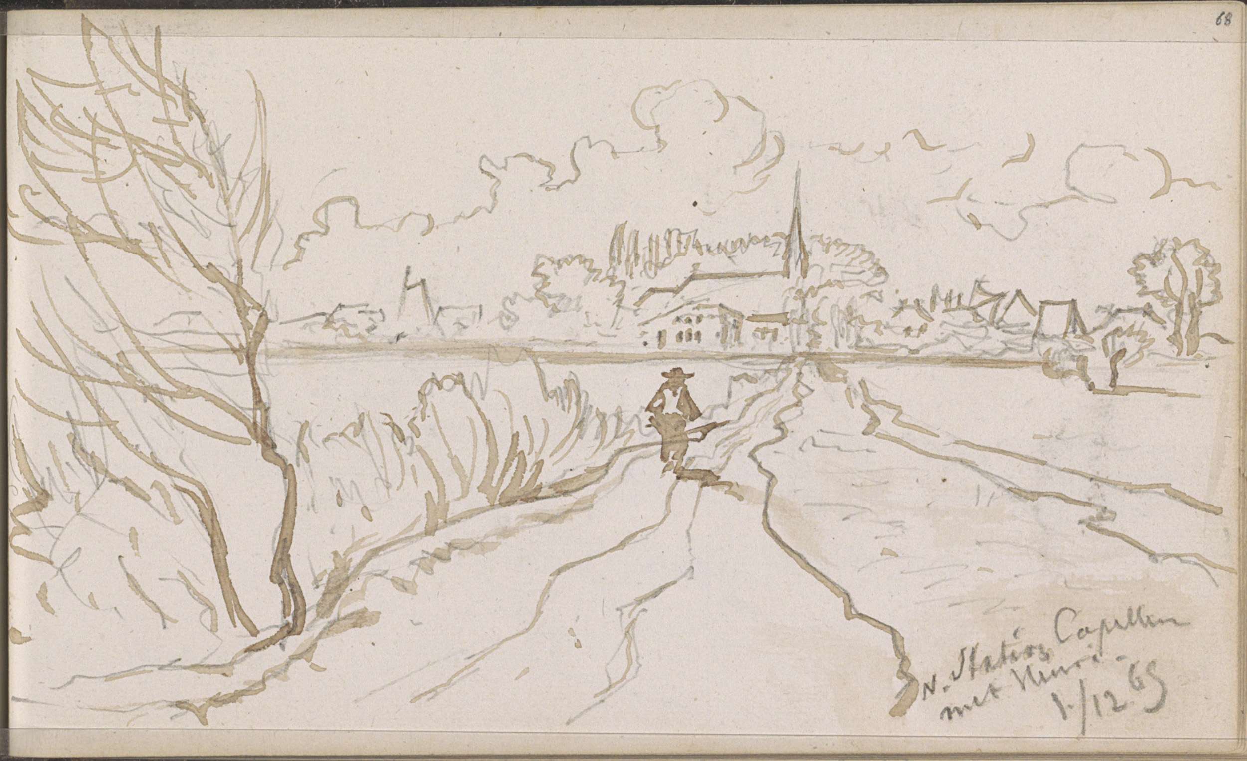 Figuur op een pad richting het station van Capelle a...